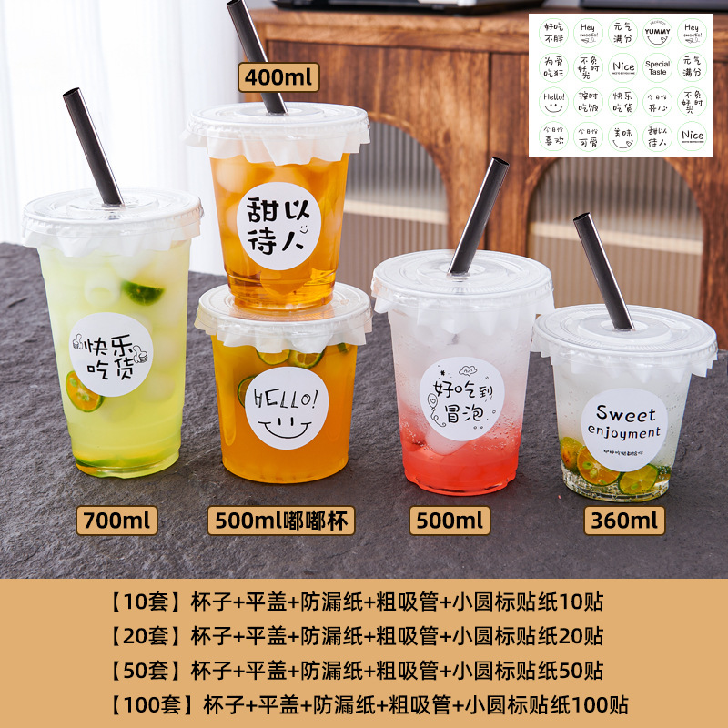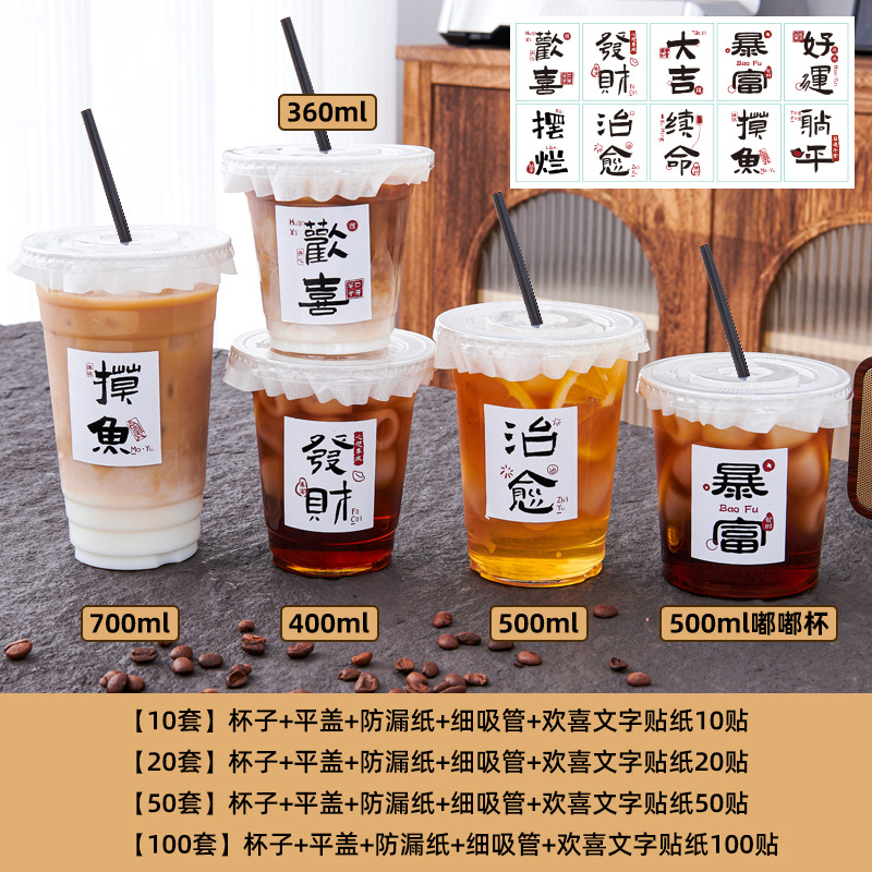 500ml咖啡奶茶杯子塑料饮料柠檬茶拿铁一次性打包带盖冰粉冷饮杯