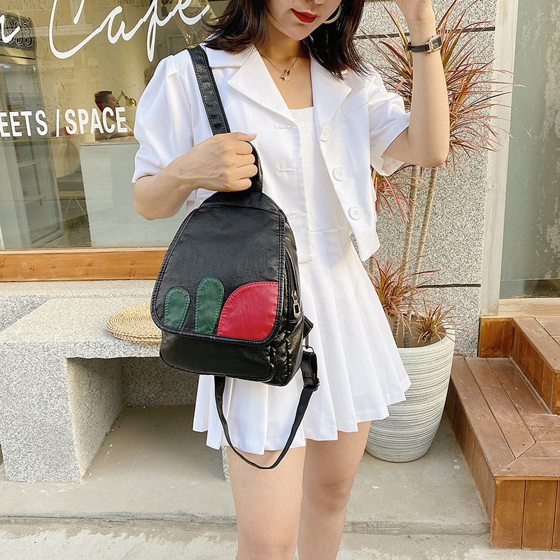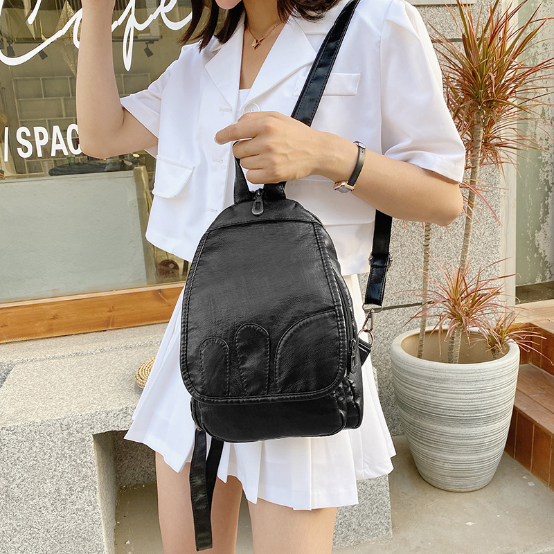 双肩包女百搭简约学院风休闲背包韩版潮流pu软皮时尚女包