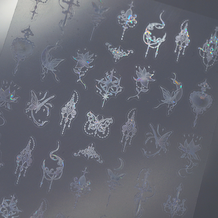 爆闪甲贴工厂批发中式风格透明玻璃碎背胶美甲贴纸