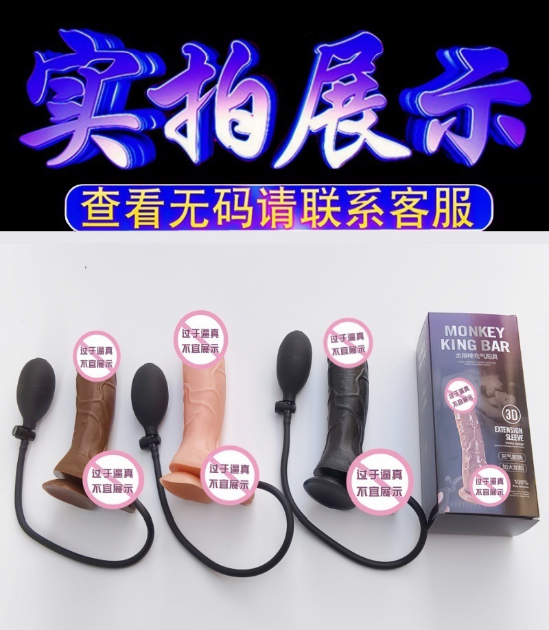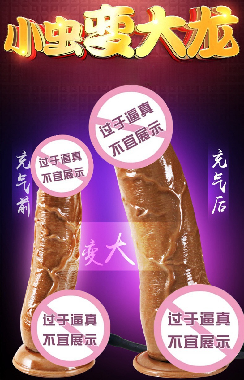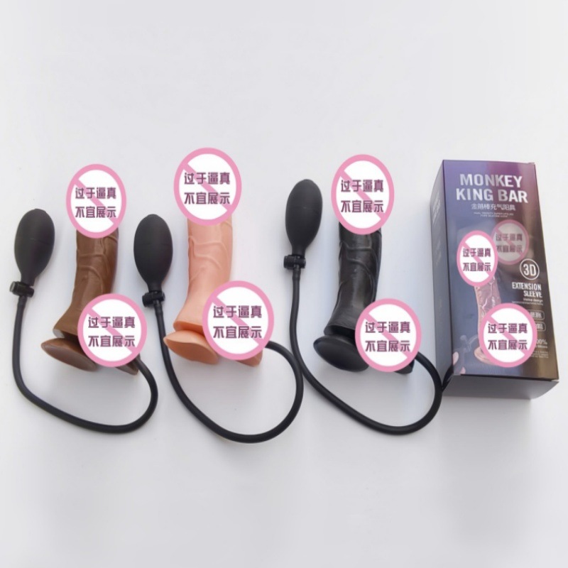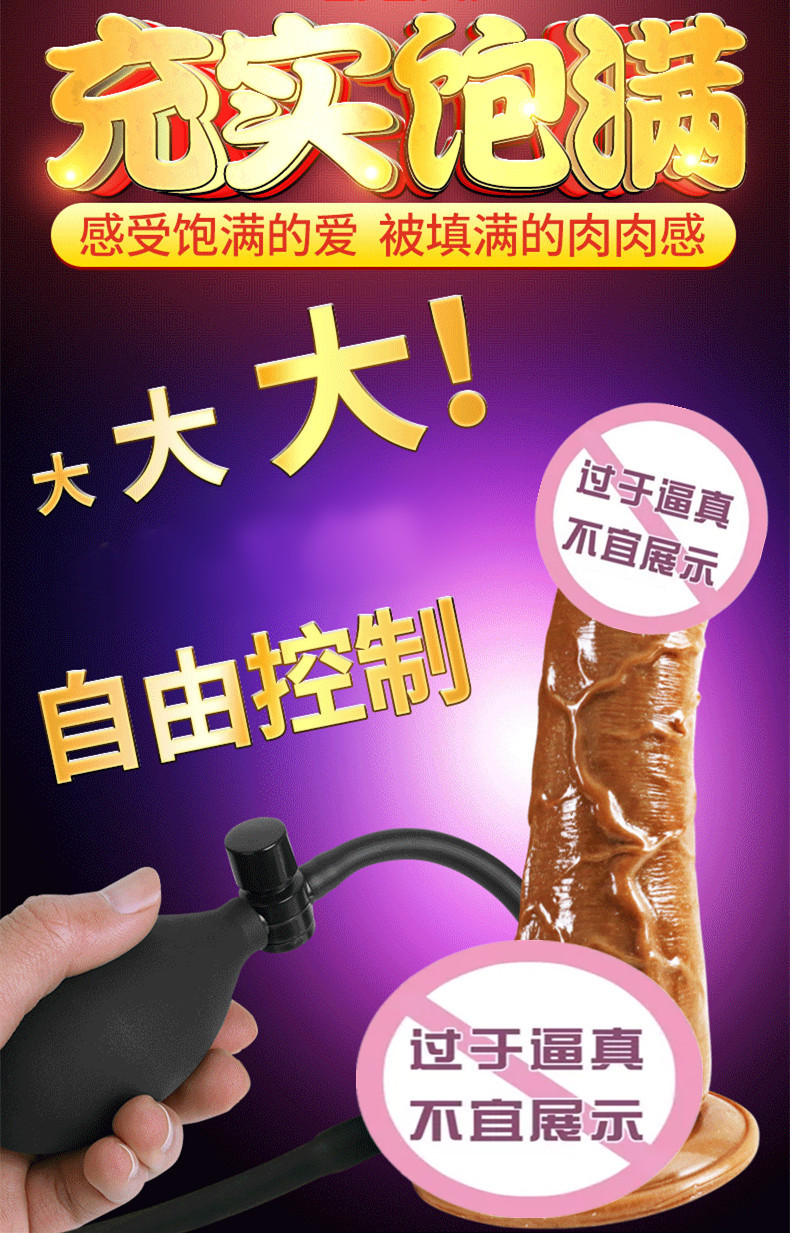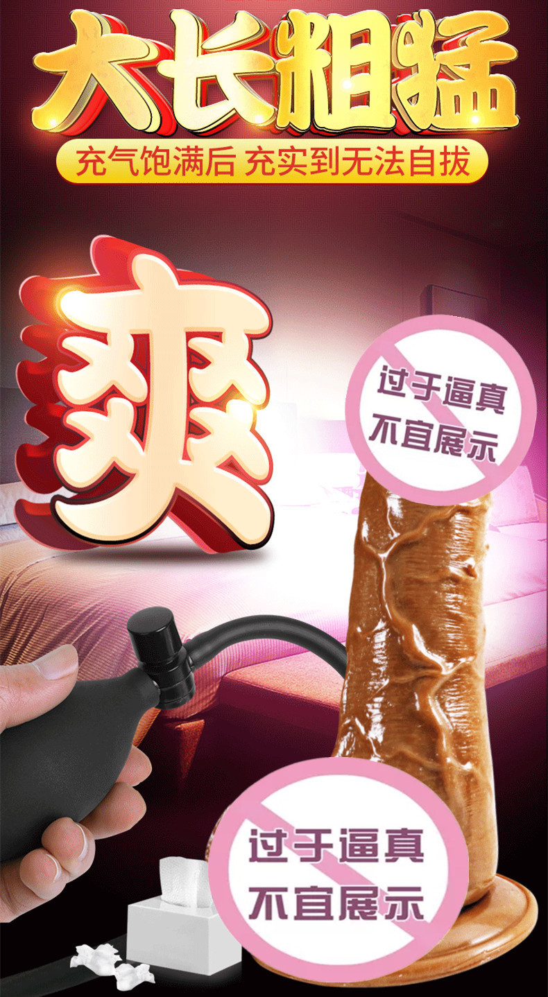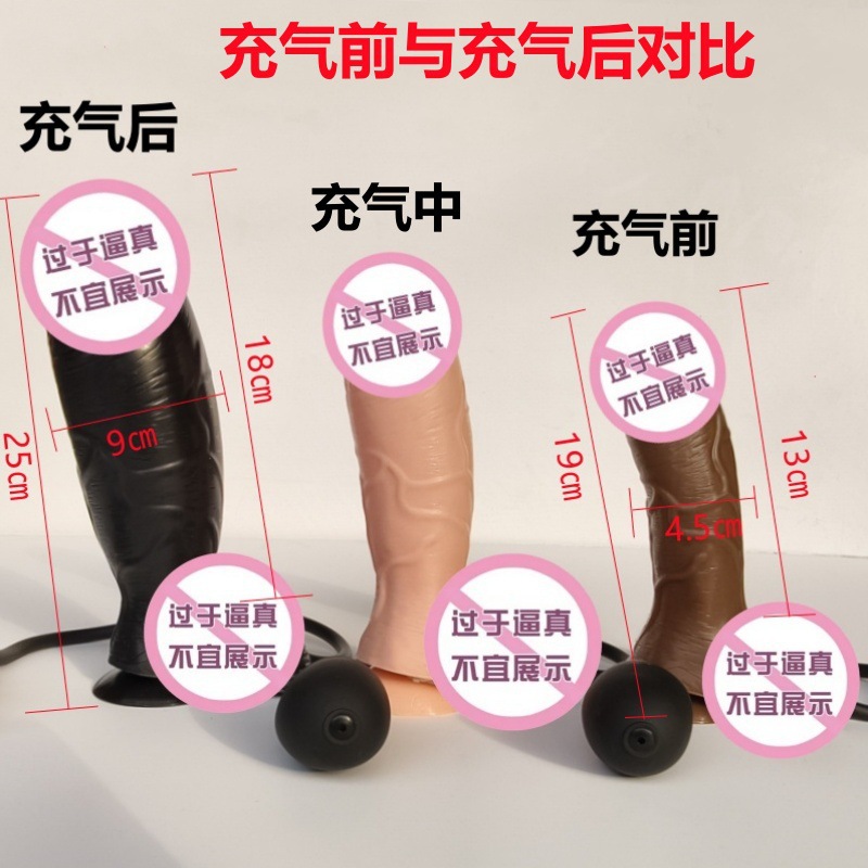 厂家直销充气膨胀仿真阳具女用自慰吸盘免提变大后庭肛塞情趣用品