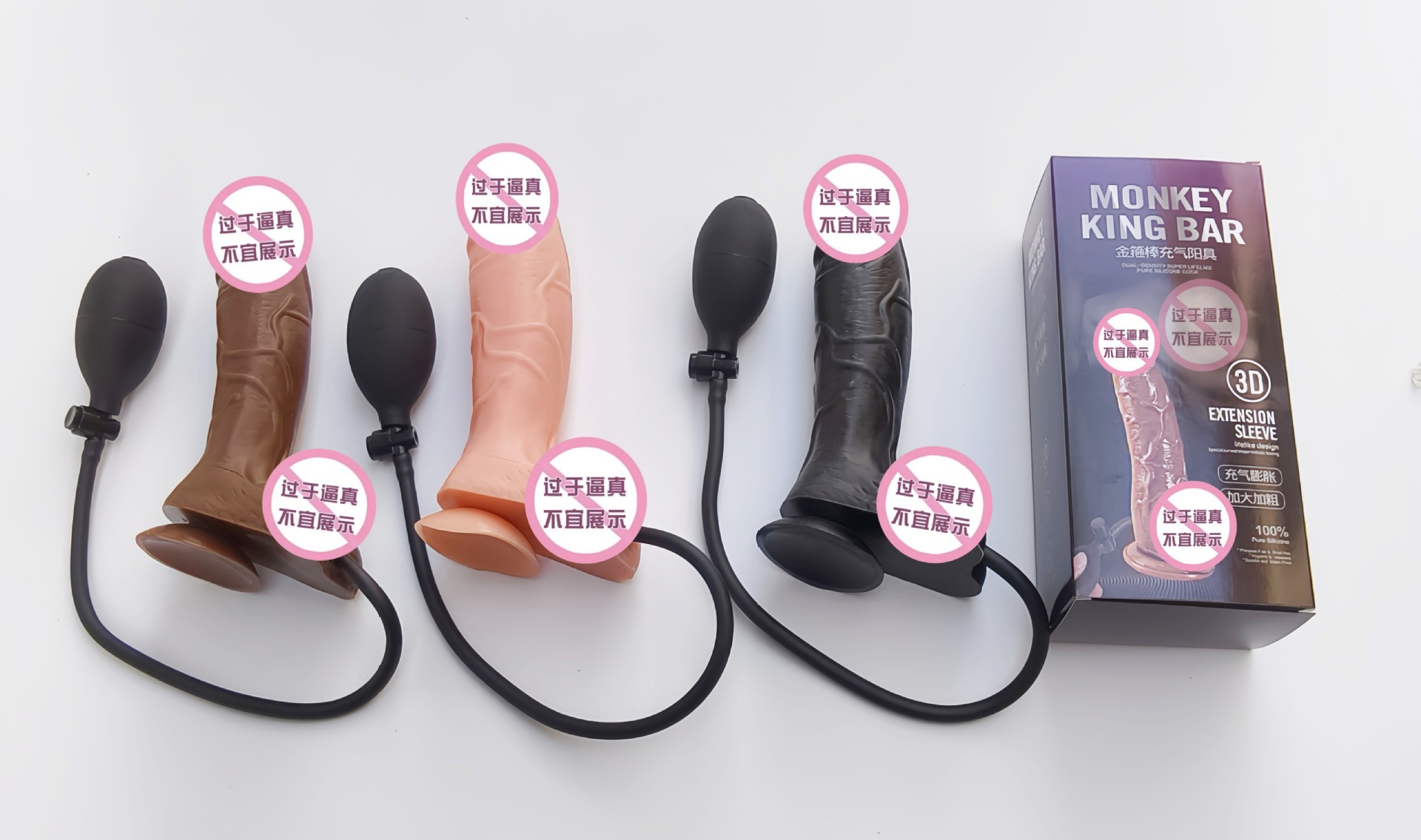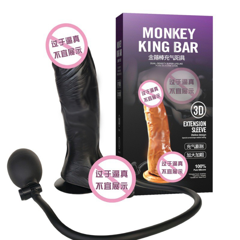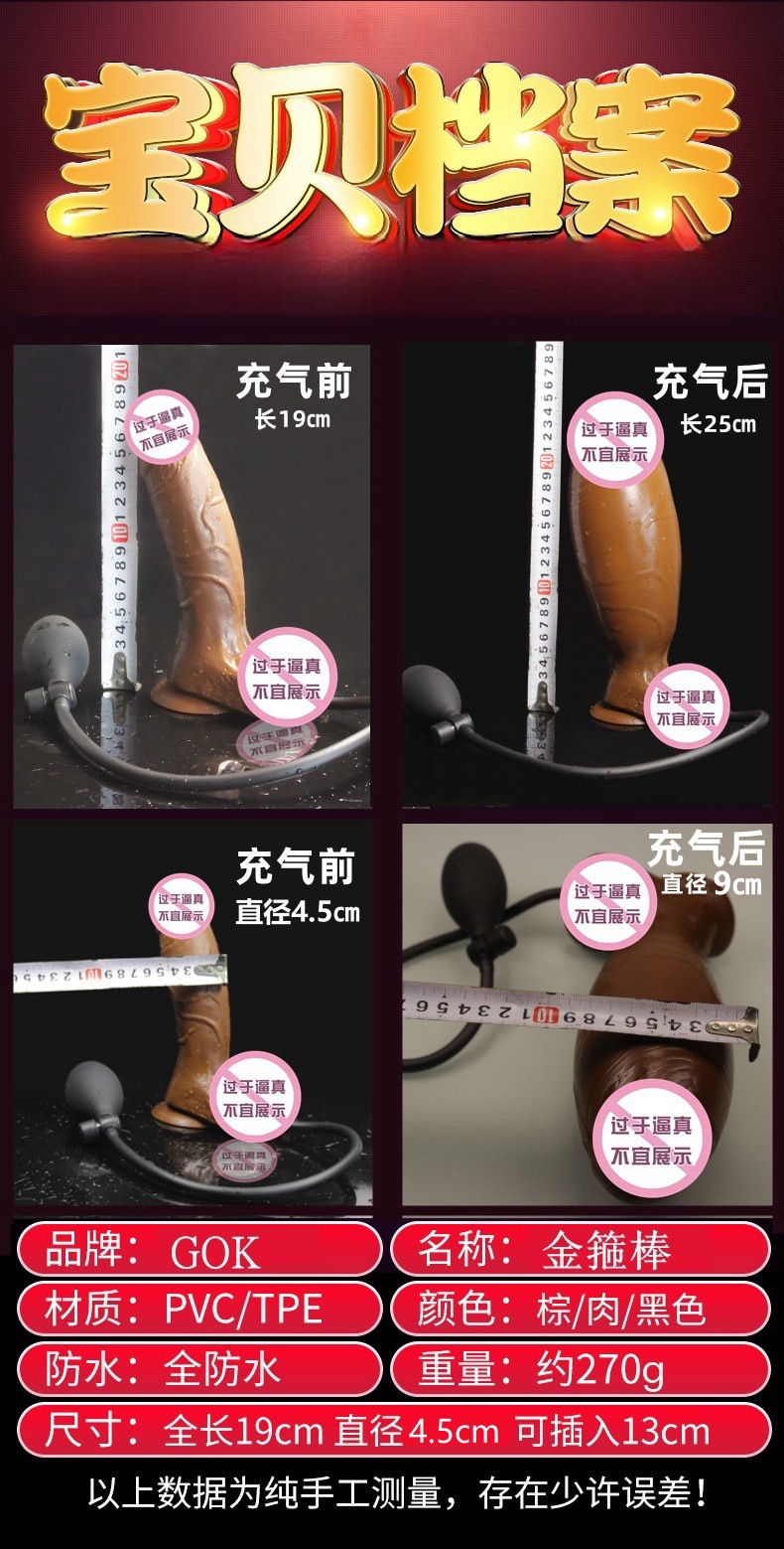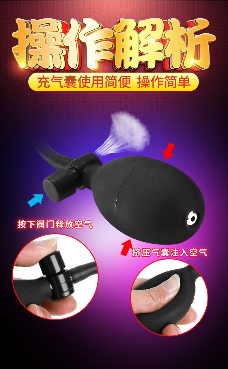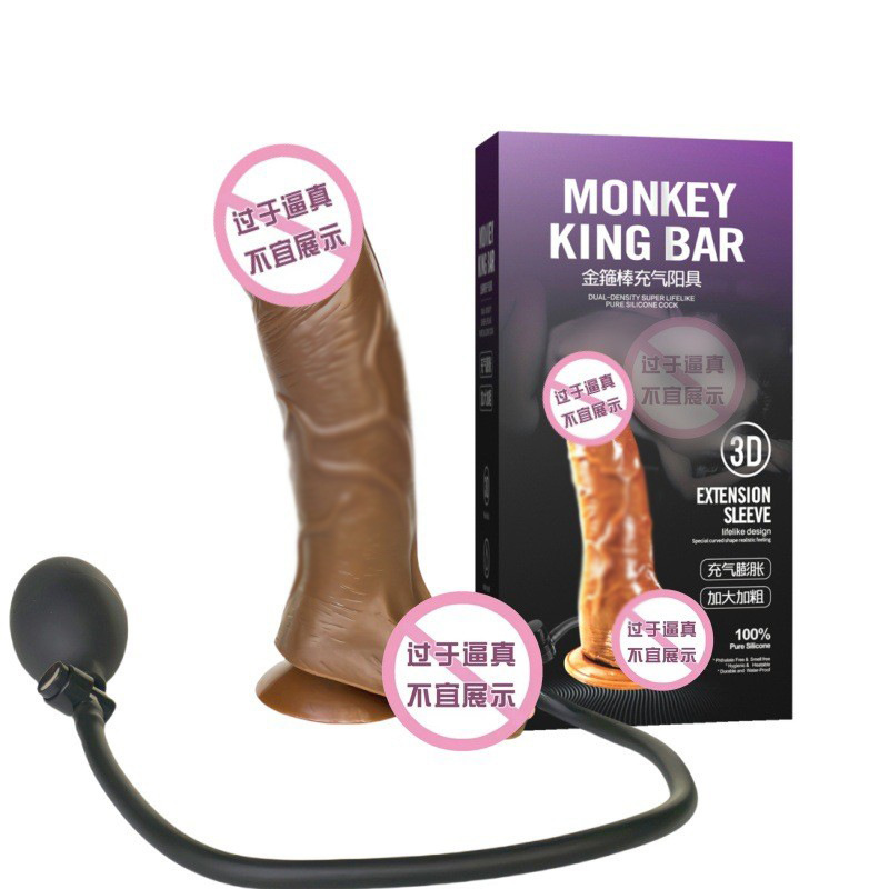 厂家直销充气膨胀仿真阳具女用自慰吸盘免提变大后庭肛塞情趣用品