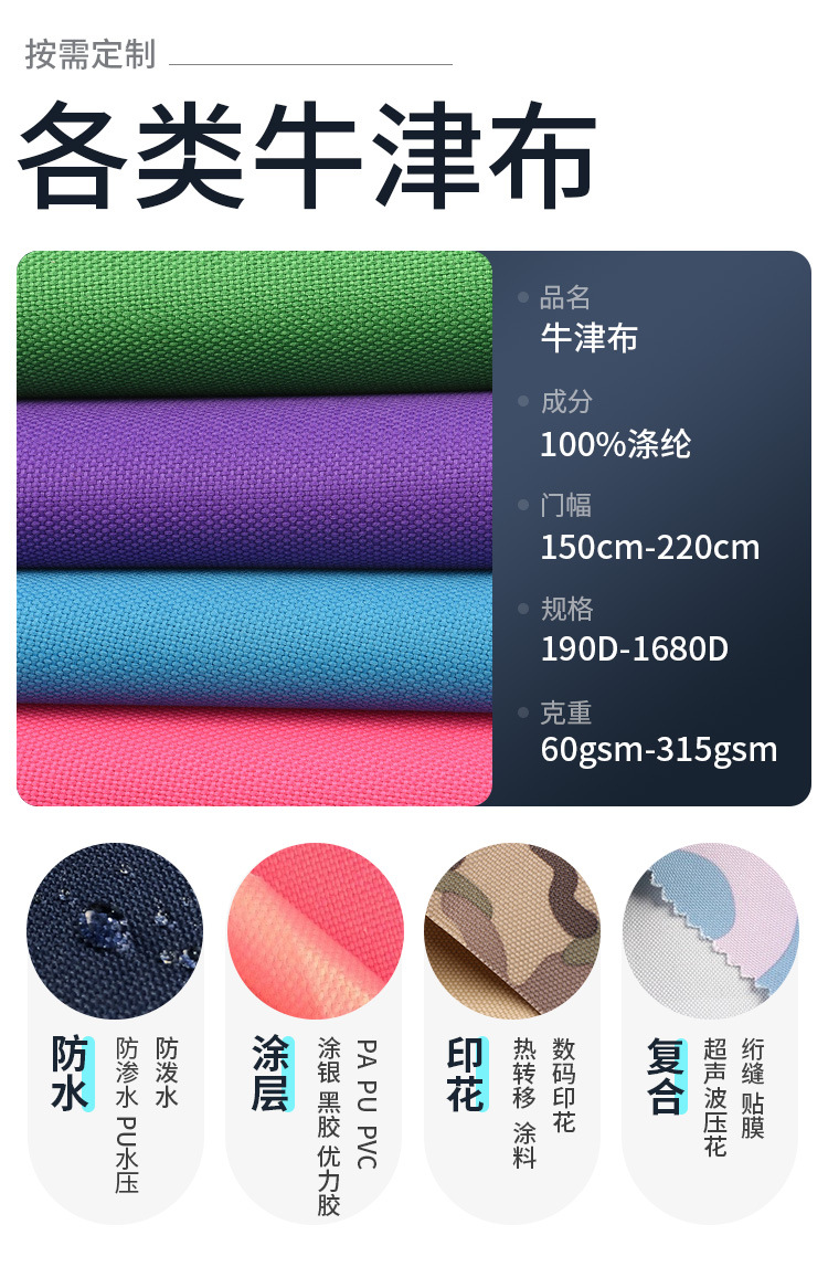 210d420D牛津布 涤纶布 平纹斜纹印花防水涂层水压 箱包布 帐篷布