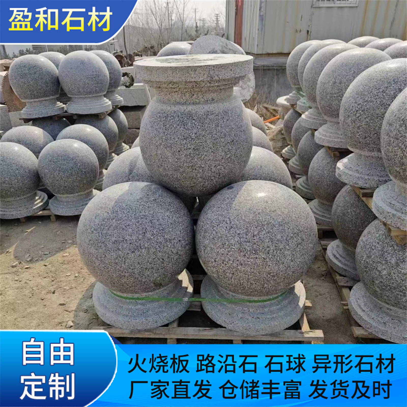 花岗岩圆球 芝麻灰芝麻白石球挡车石墩子广场拦车石隔离墩挡车球