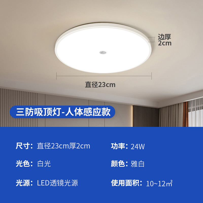 家用灯具楼梯灯过道客厅灯声光控雷达人体感应智能led三防吸顶灯