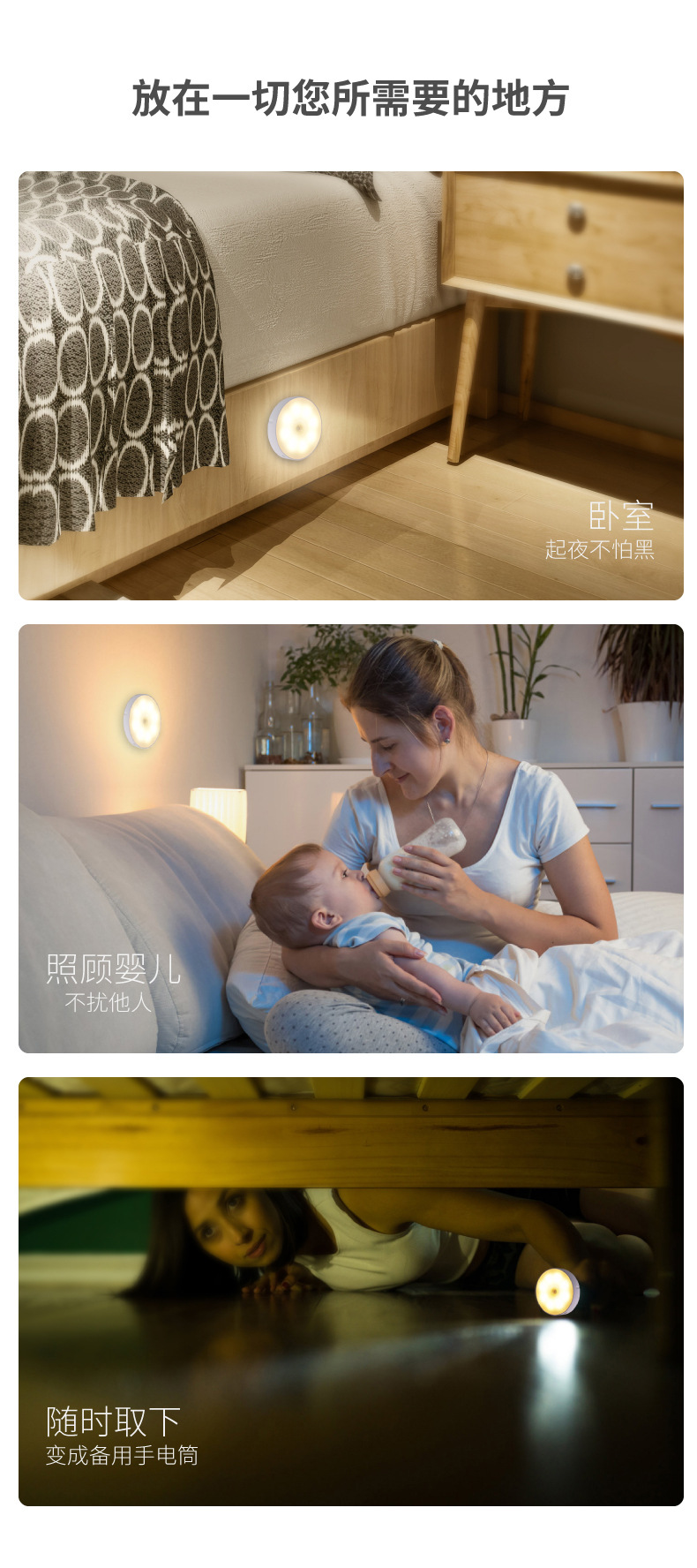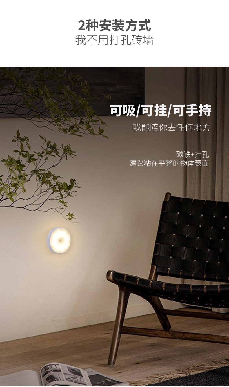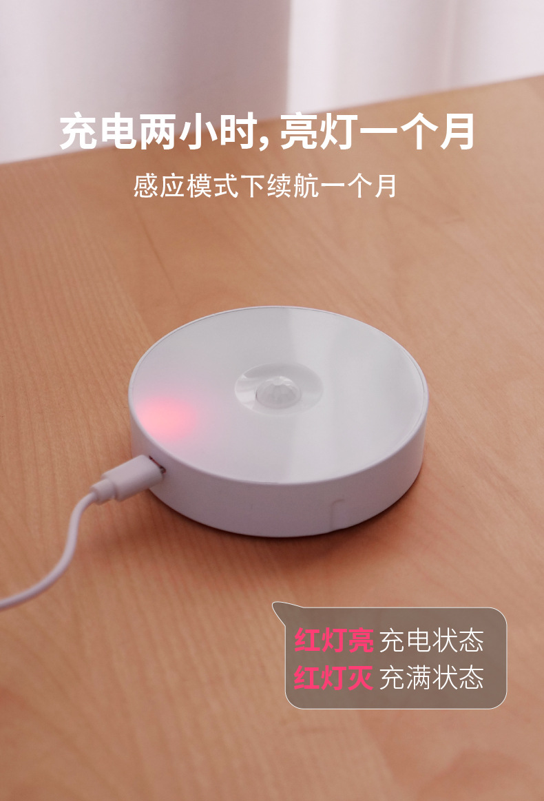 跨境智能人体红外感应小夜灯 无线LED充电磁吸式床头卧室小台灯