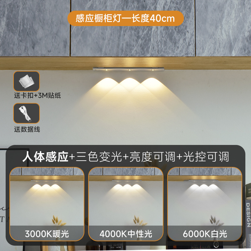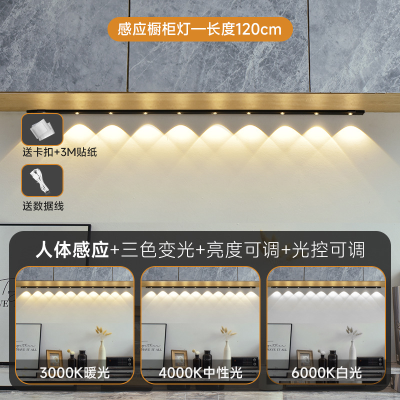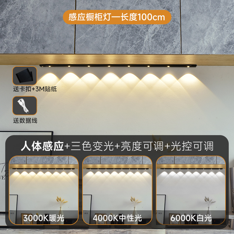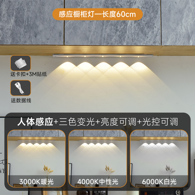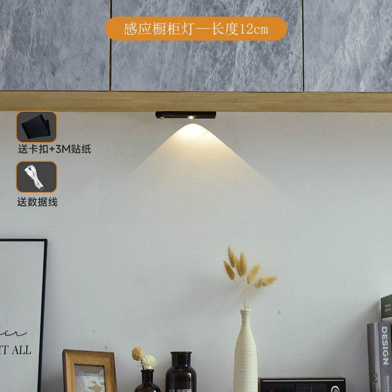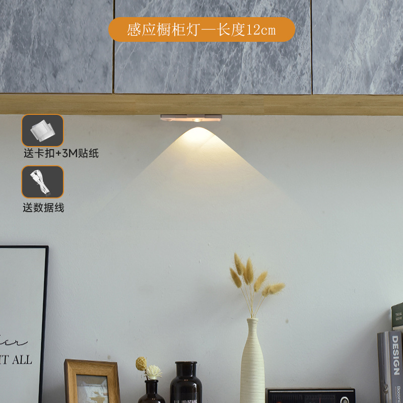 led智能人体感应灯自粘充电式超薄猫眼山丘灯条衣柜酒柜橱柜灯带