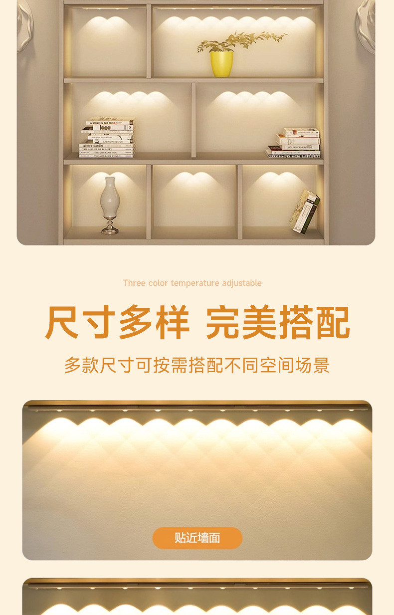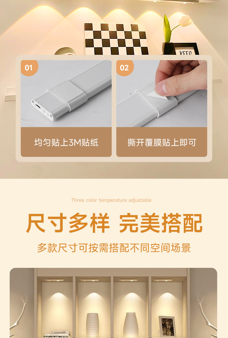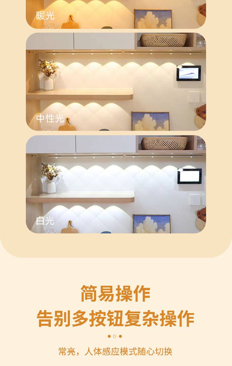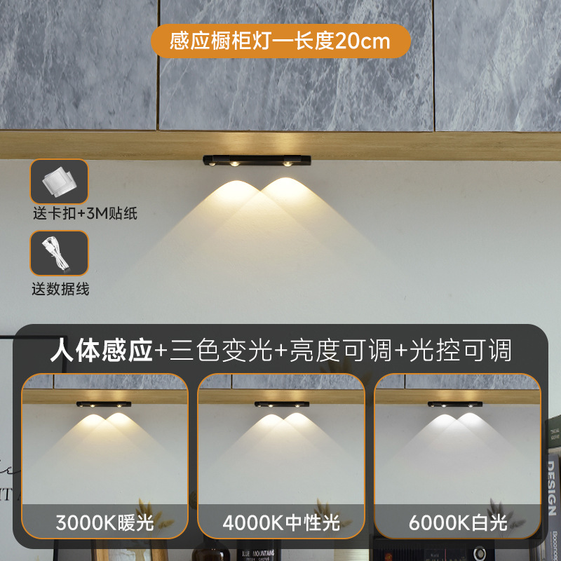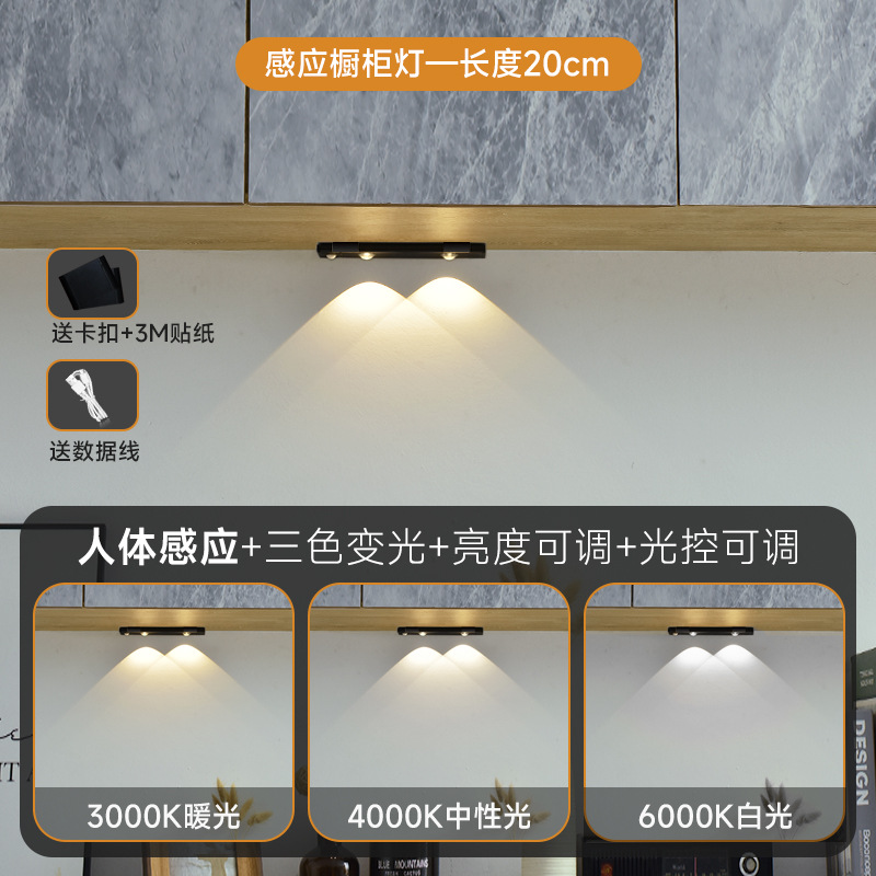 led智能人体感应灯自粘充电式超薄猫眼山丘灯条衣柜酒柜橱柜灯带