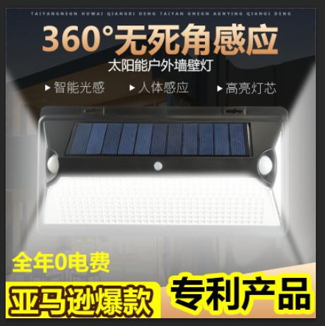 四面100LED太阳能灯人体感应灯景观庭院壁灯户外灯具围墙照明路灯