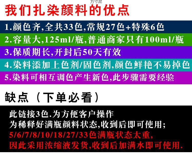 扎染颜料液体33色冷染扎染材料125免煮扎染材料包需稀释后用批发