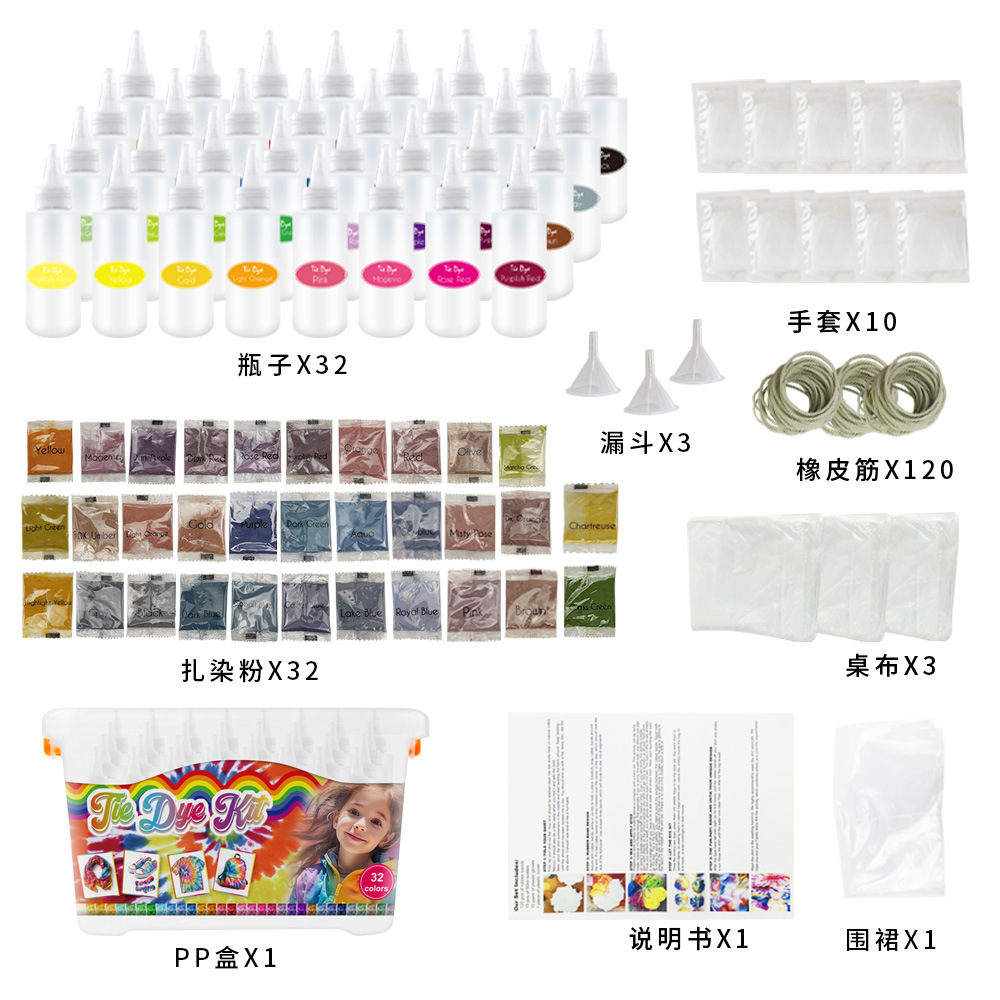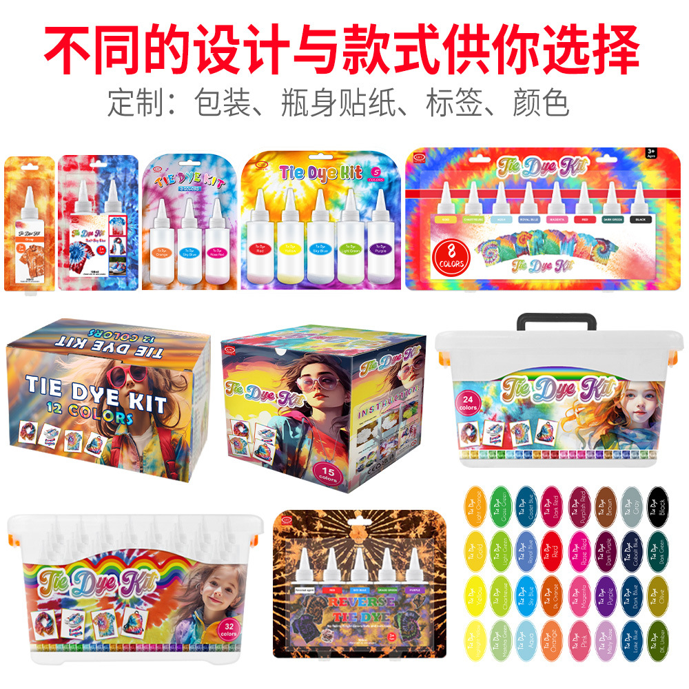 染料扎染包diy材料包颜料色粉套装 冷水衣服染色旧衣翻新 32色