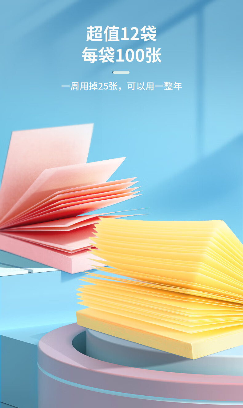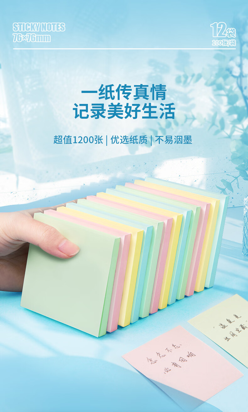 便利贴彩色便签纸可爱粘性强便签本可撕学生索引贴办公留言贴创意