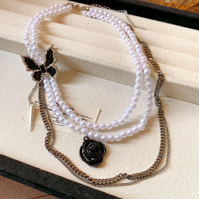 韩国气质爱心蝴蝶珍珠流苏项链小众时尚高级感锁骨链百搭项饰批发