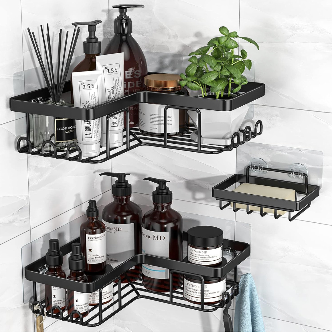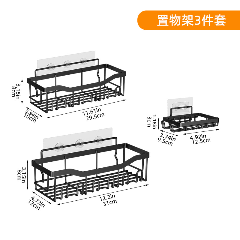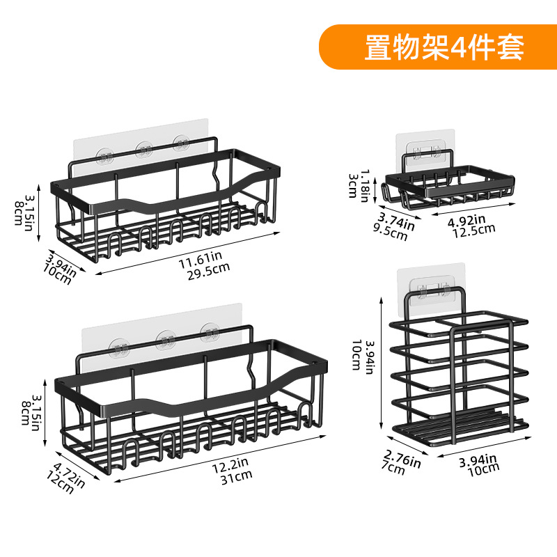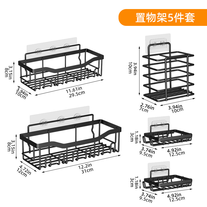 跨境免打孔浴室收纳架置物架套装卫生间铁艺壁挂式置物架洗漱收纳