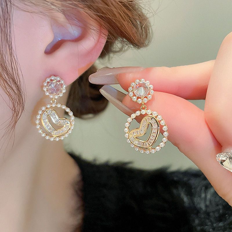 银针法式花朵爱心珍珠耳钉优雅高级感复古耳环小众气质新款耳饰女