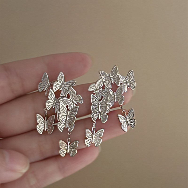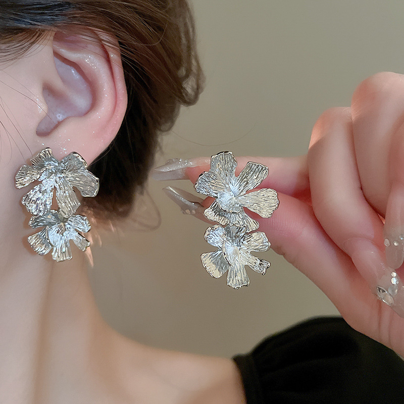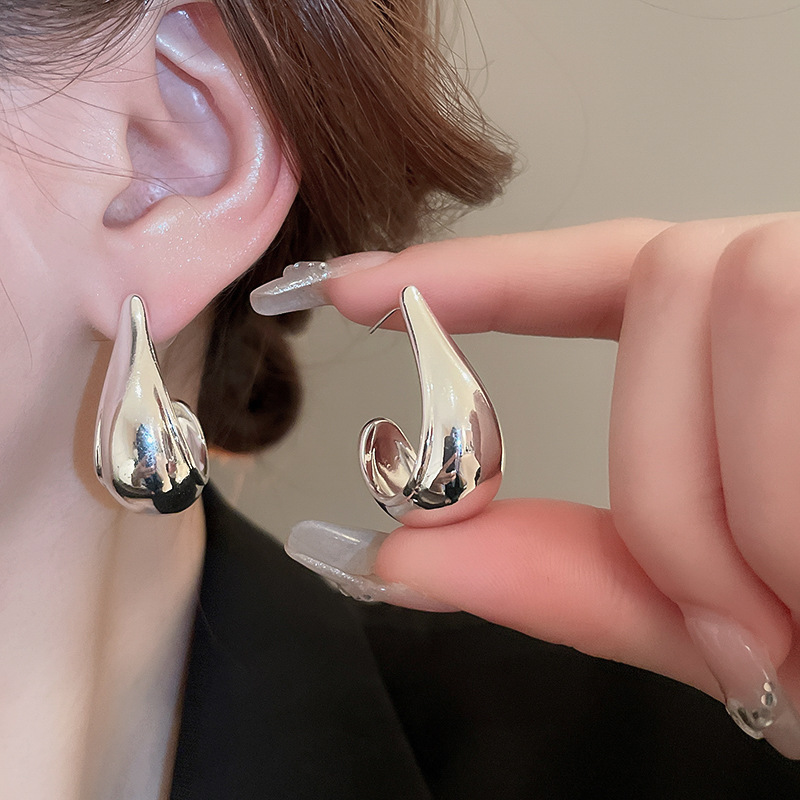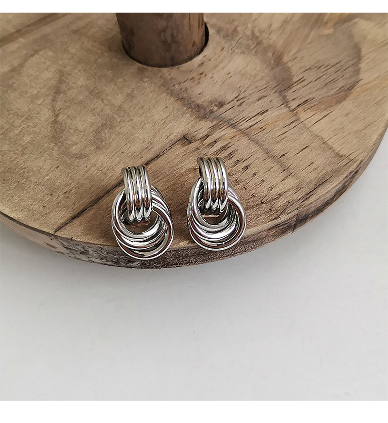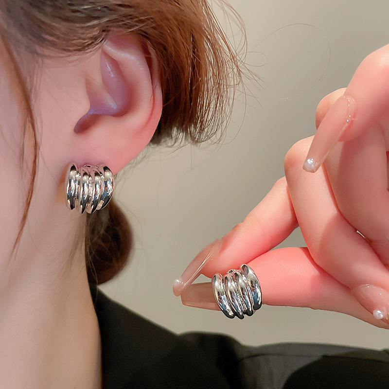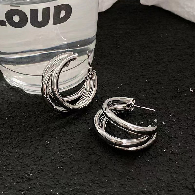 银色金属多层圆圈冷淡风耳环小众简约耳钉耳圈轻奢高级感耳饰批发