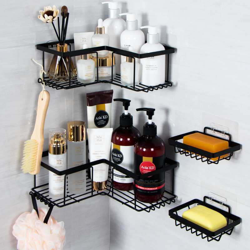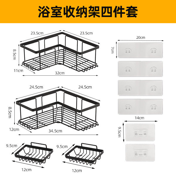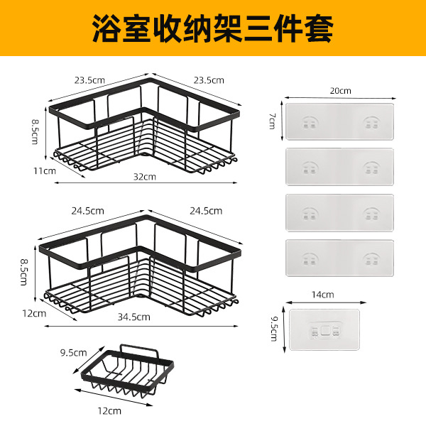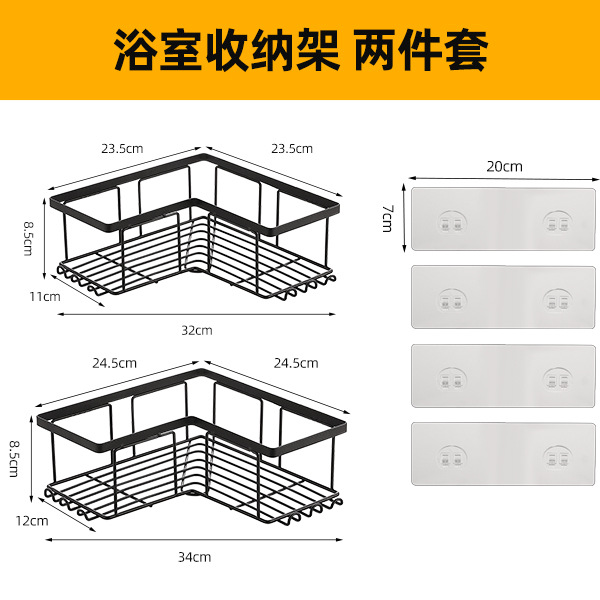 跨境浴室三角置物架卫生间转角架子免打孔墙角收纳架铁艺三角架