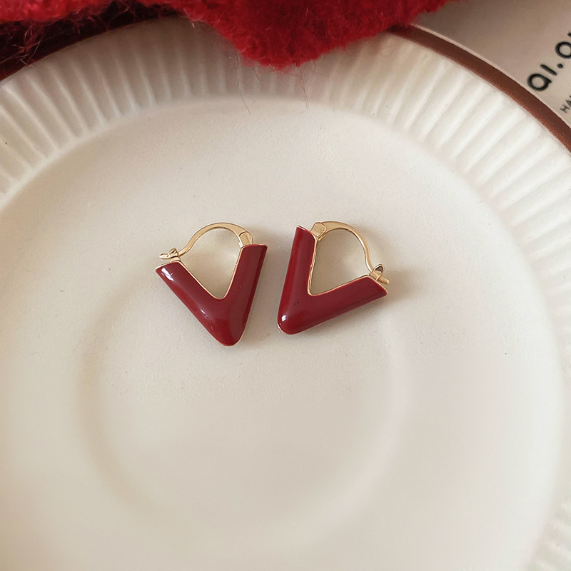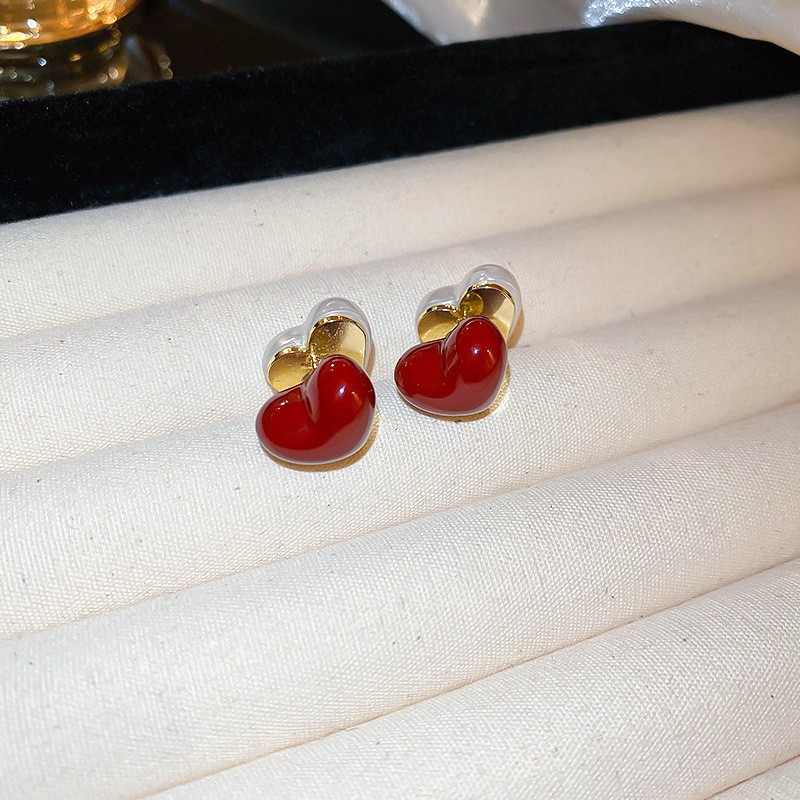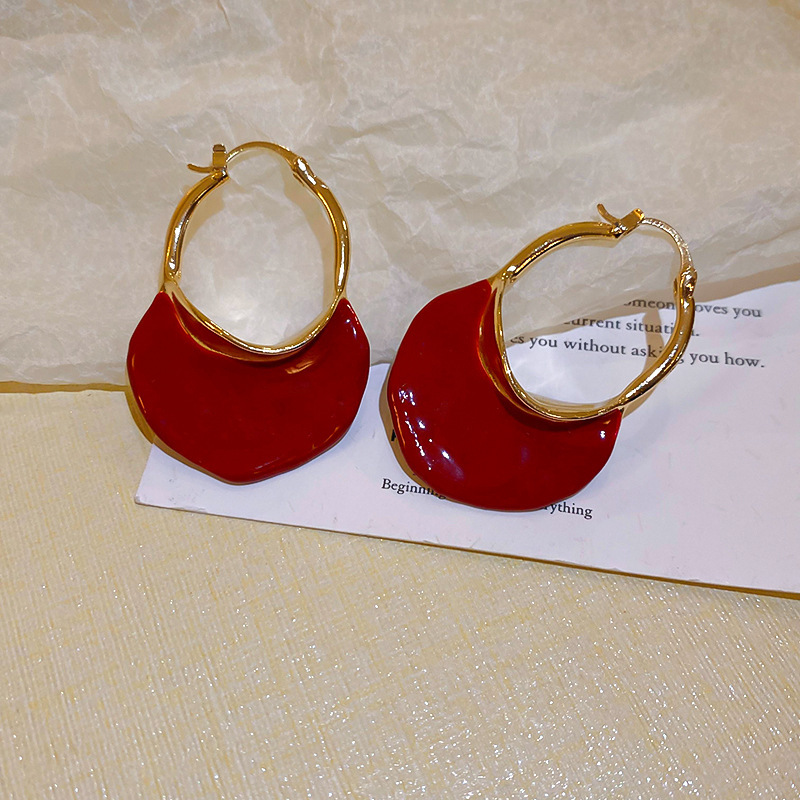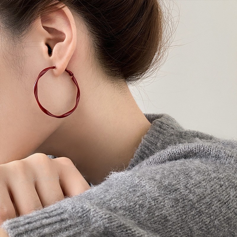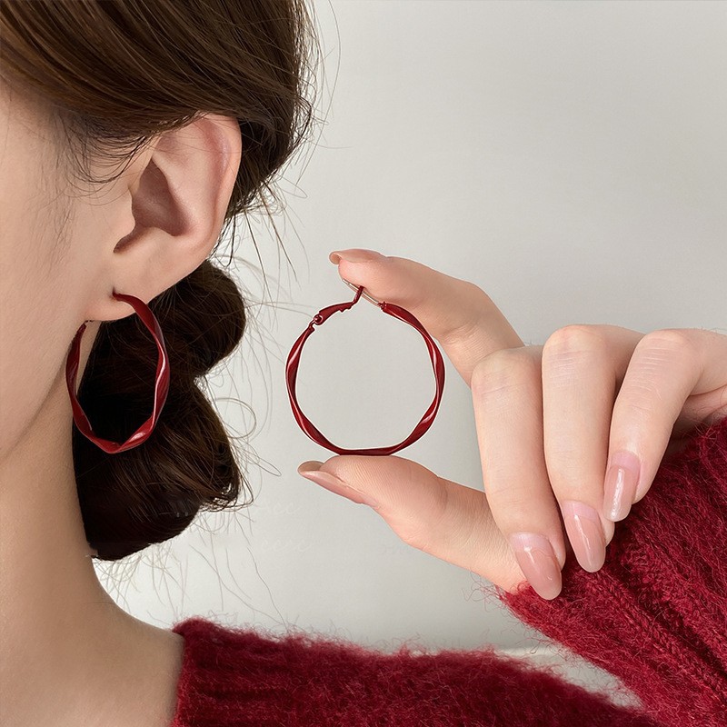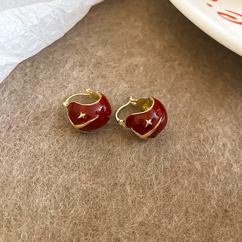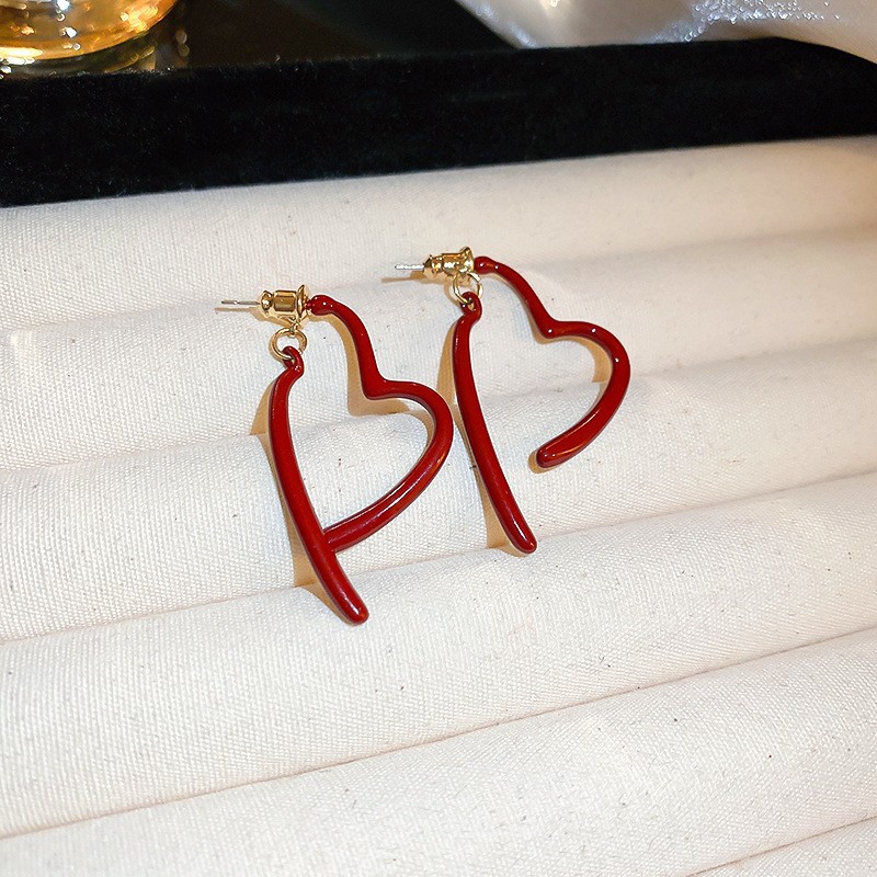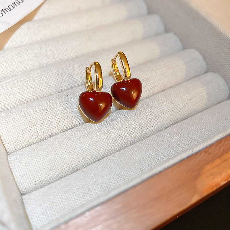 银针安可拉红色圆形爱心耳环港风复古耳圈耳钉小众轻奢高级感耳饰