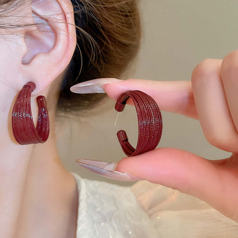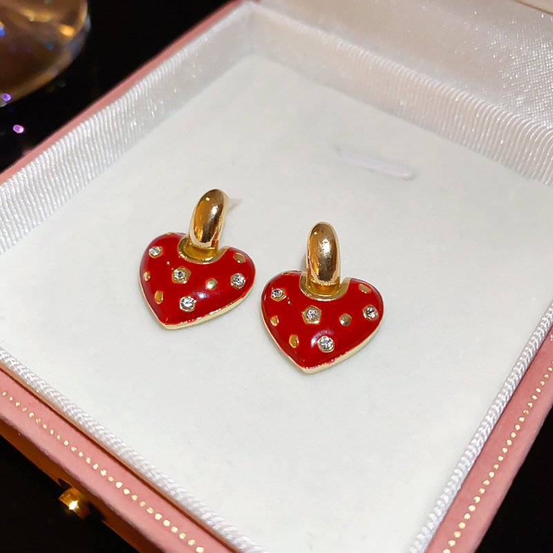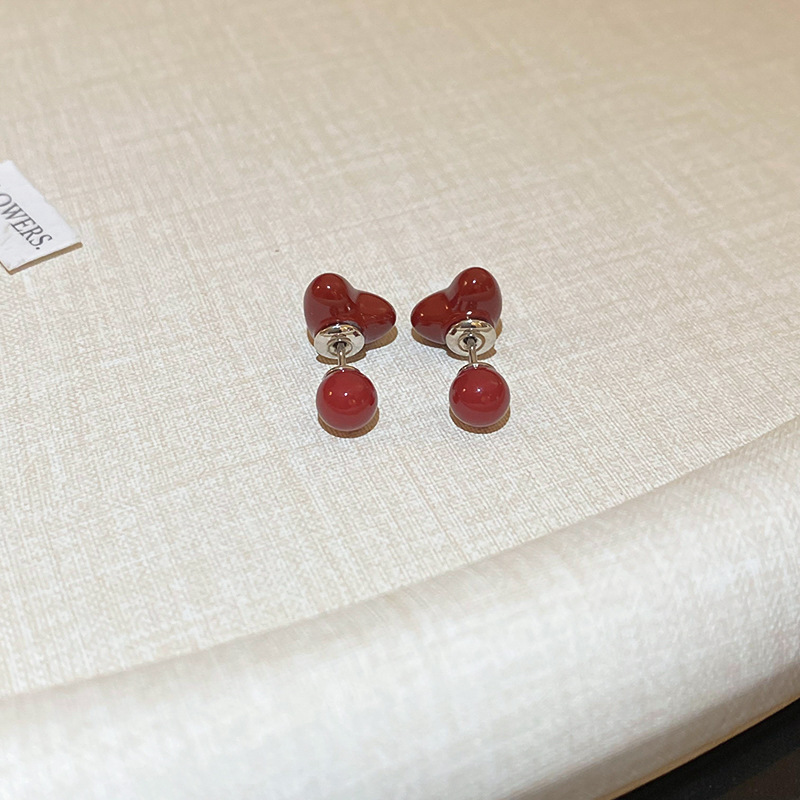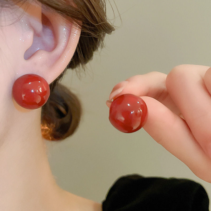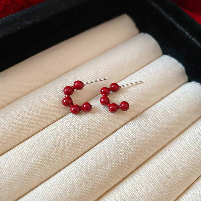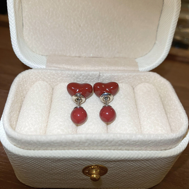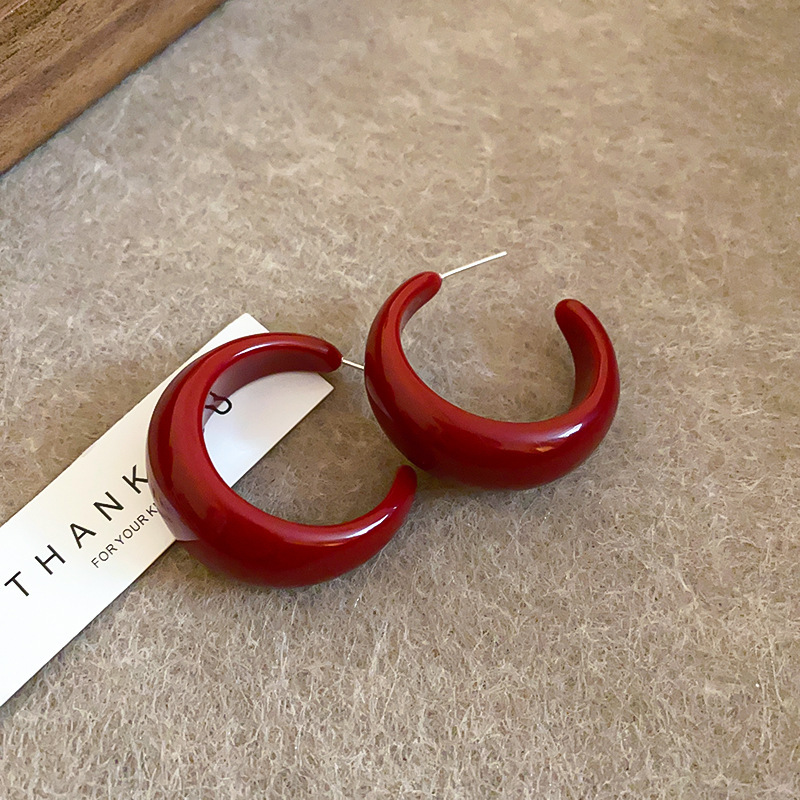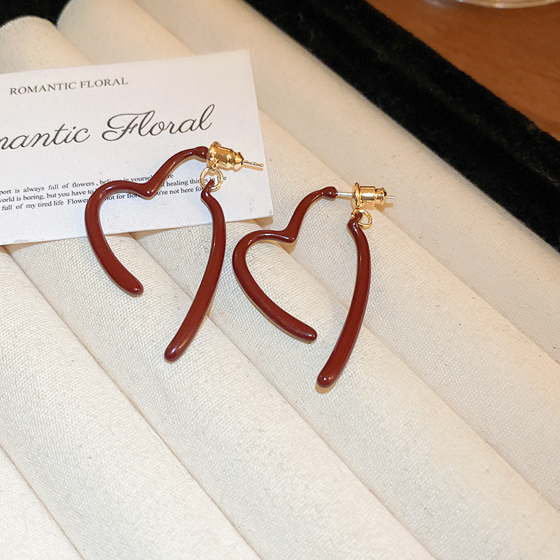银针安可拉红色圆形爱心耳环港风复古耳圈耳钉小众轻奢高级感耳饰