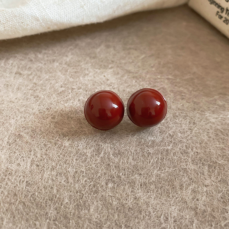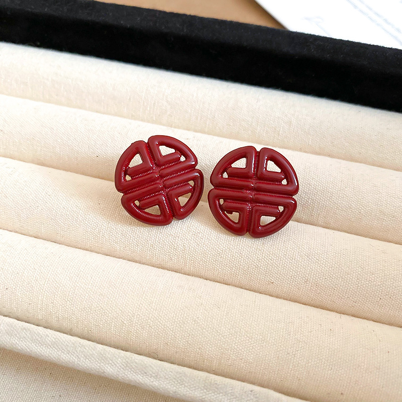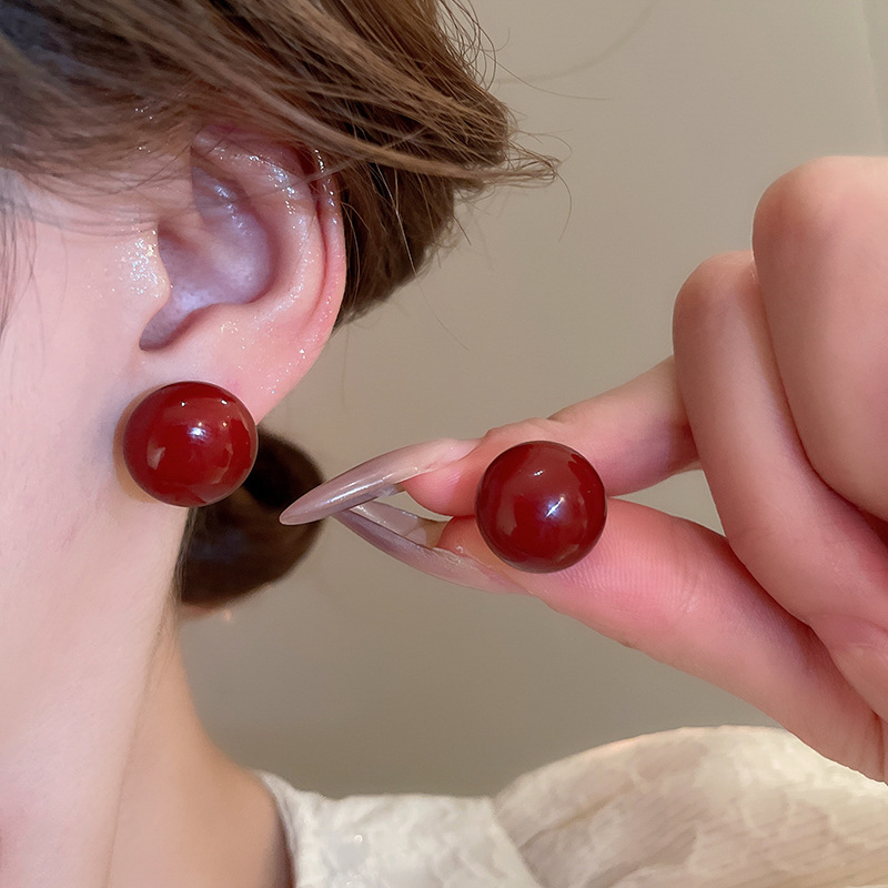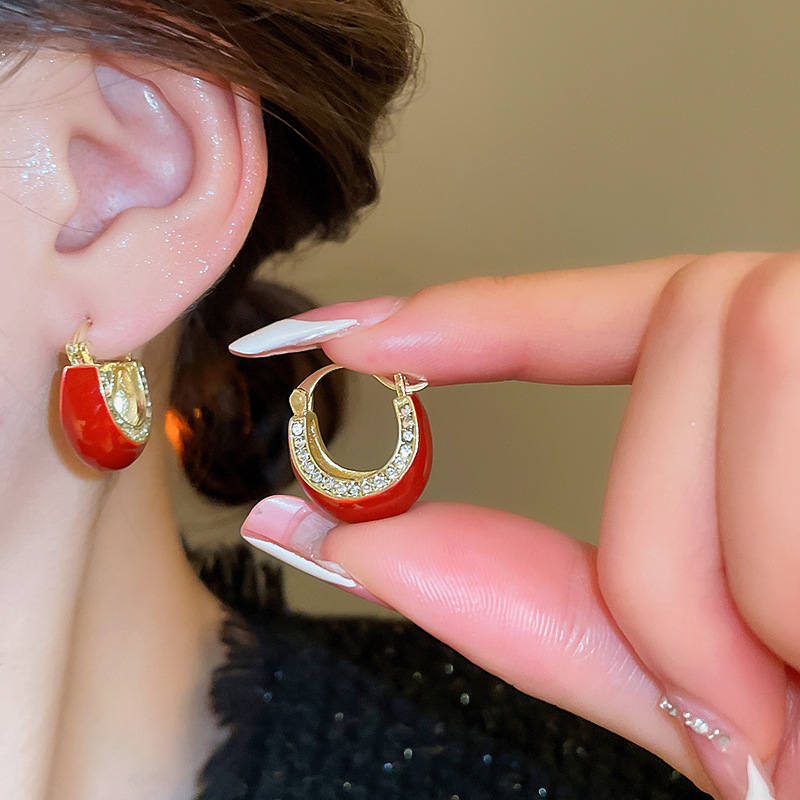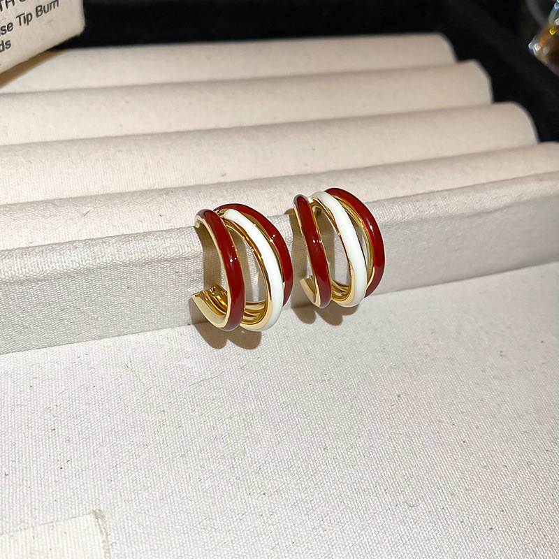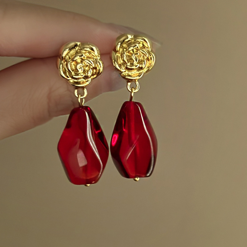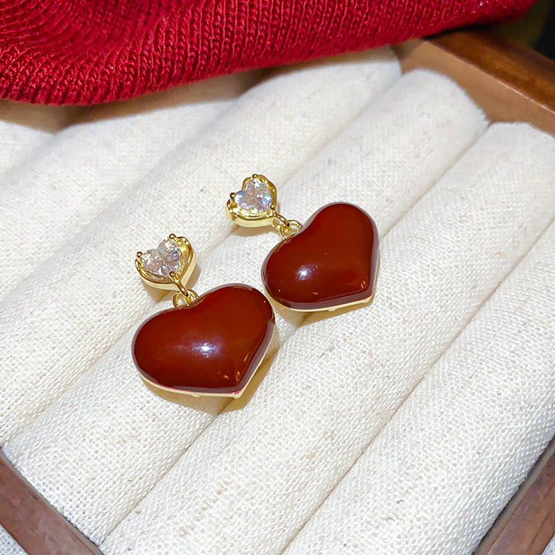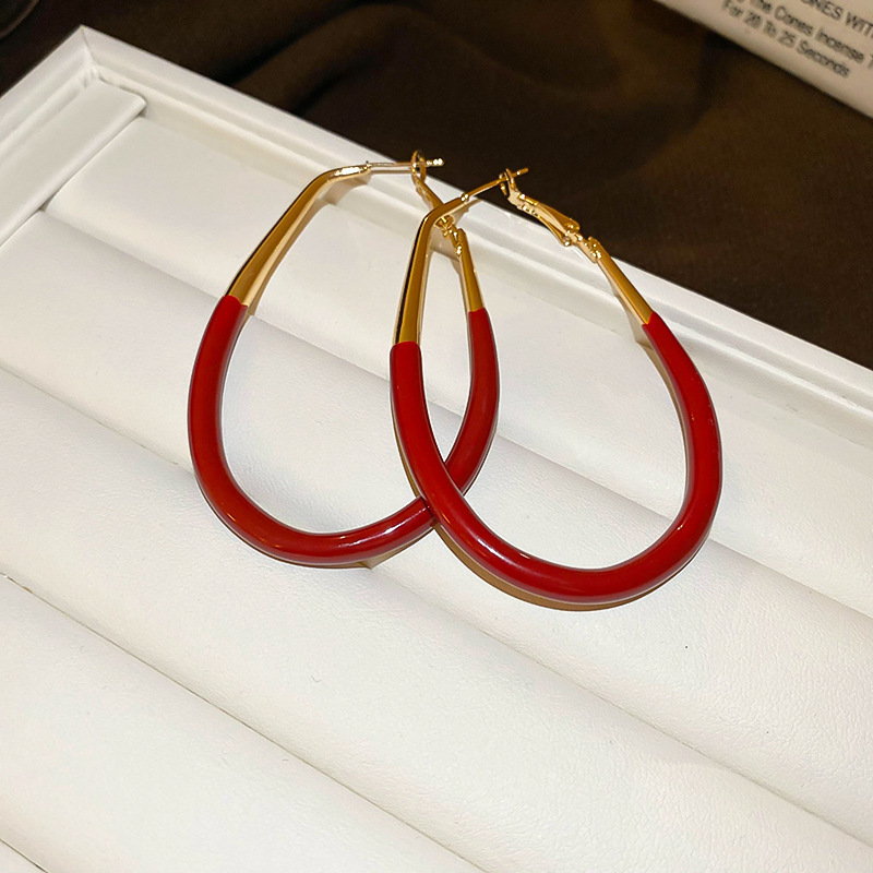 银针安可拉红色圆形爱心耳环港风复古耳圈耳钉小众轻奢高级感耳饰