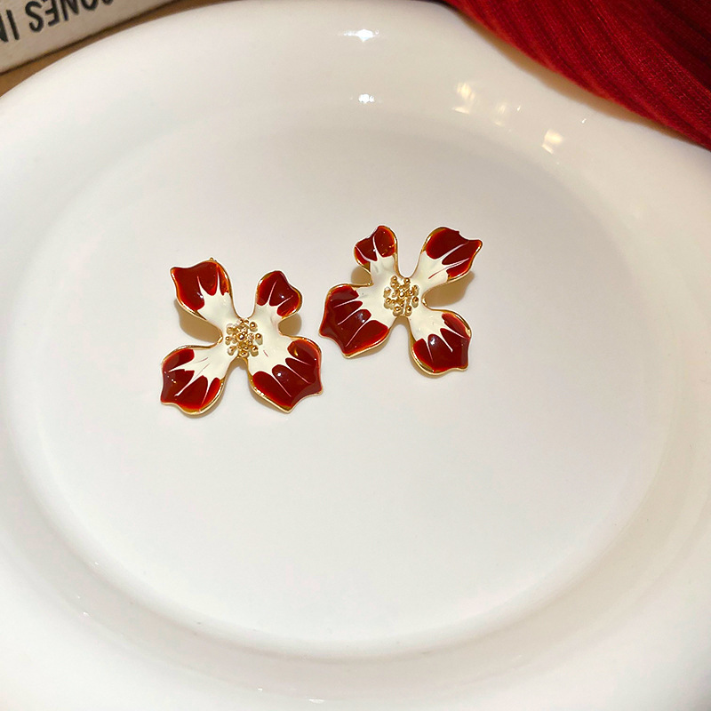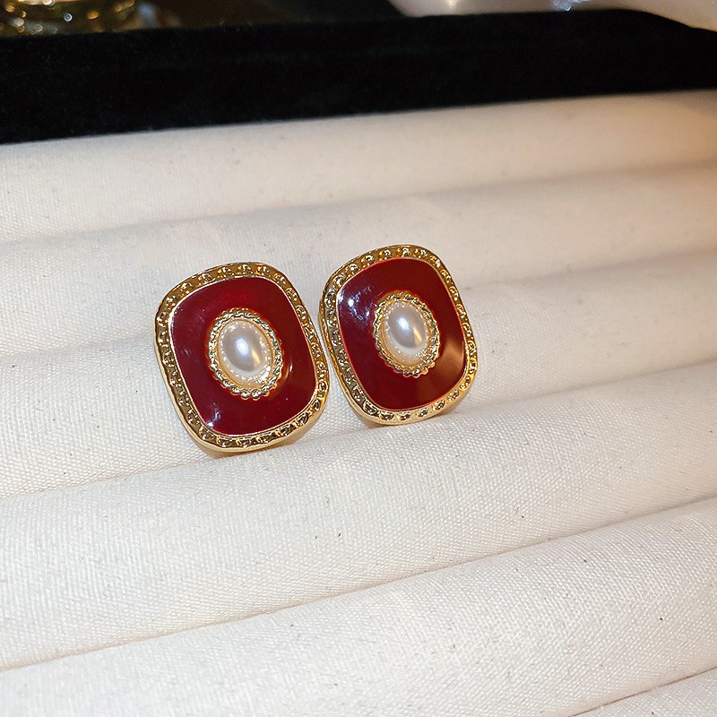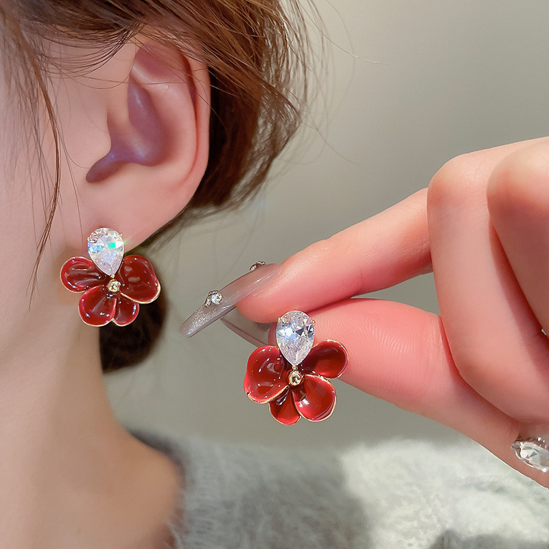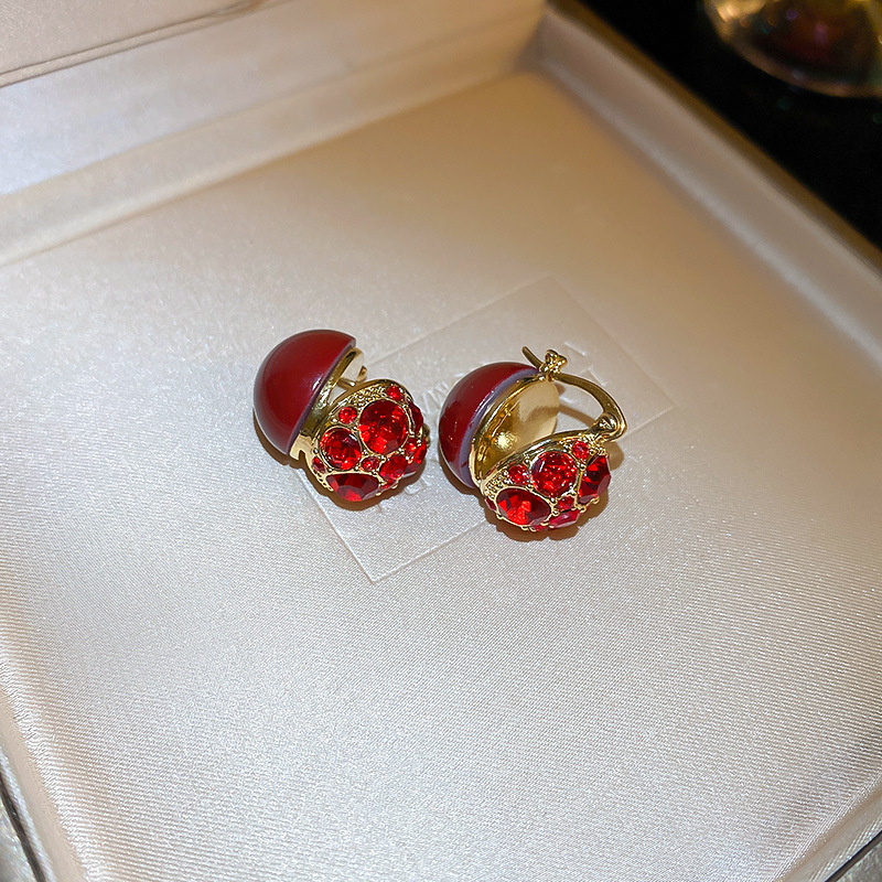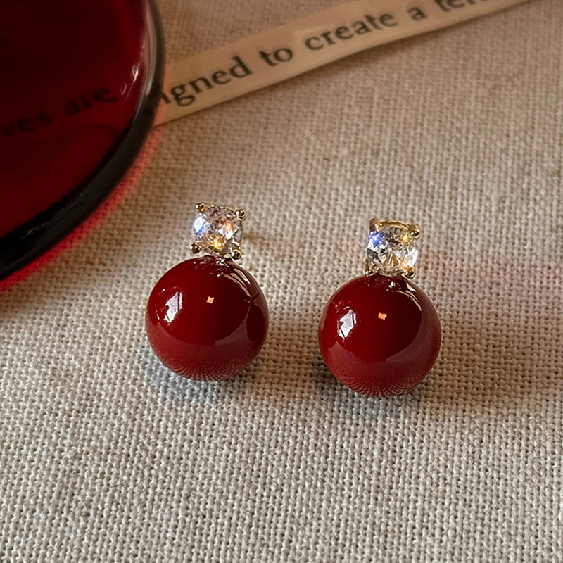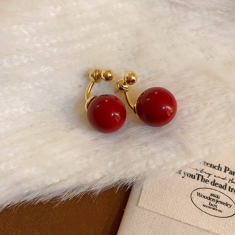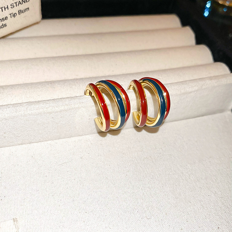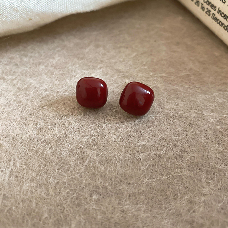 银针安可拉红色圆形爱心耳环港风复古耳圈耳钉小众轻奢高级感耳饰