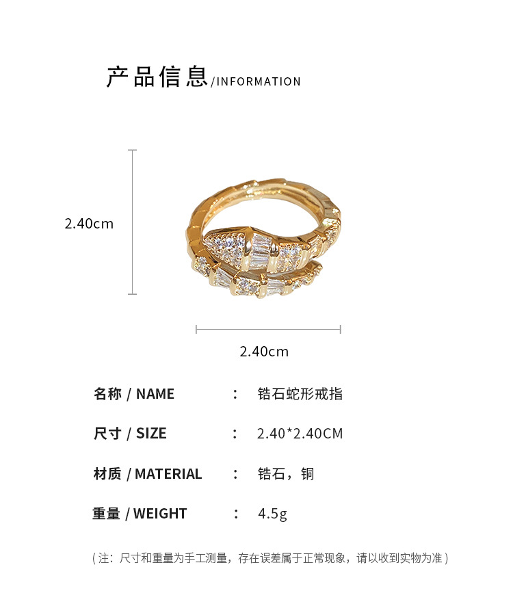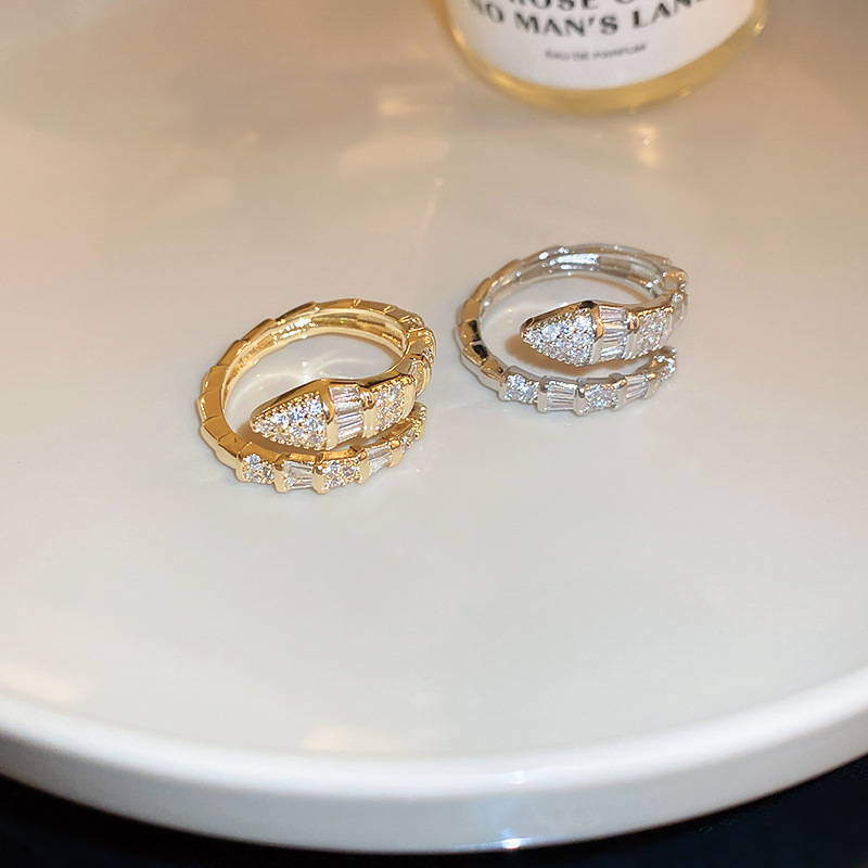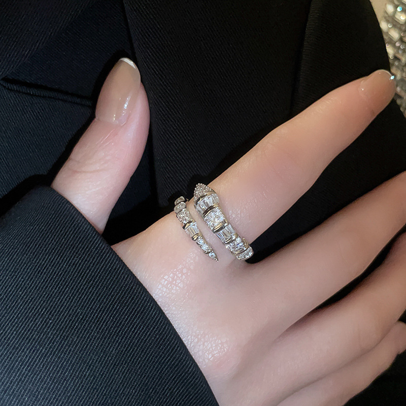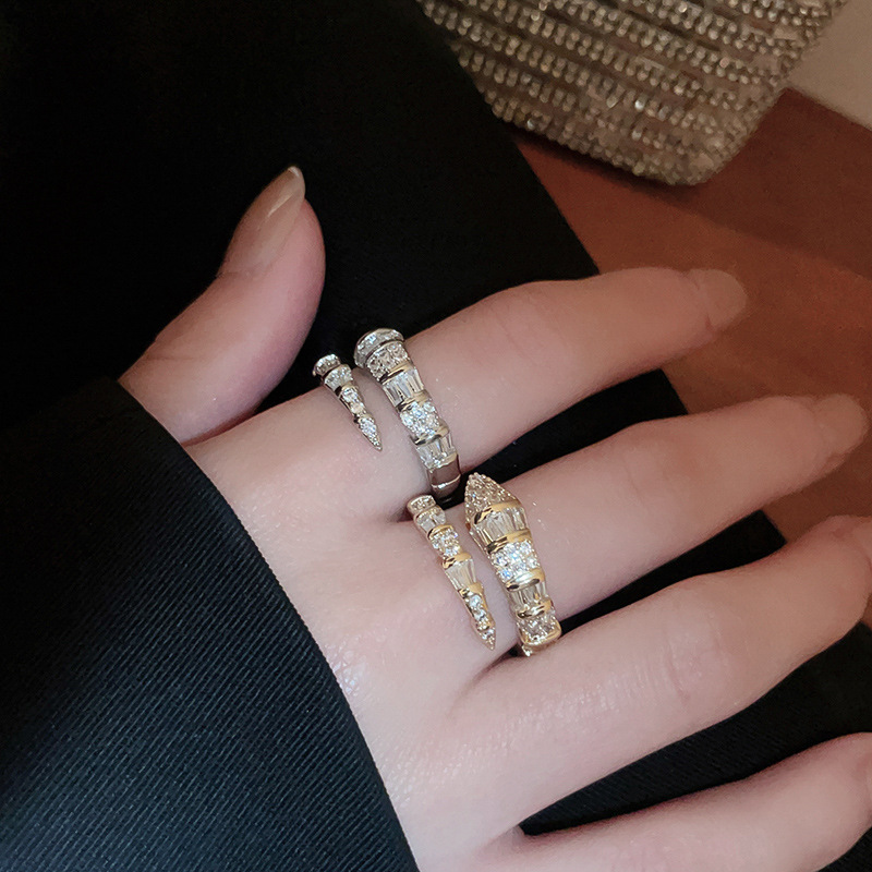 欧美冷淡风锆石蛇形戒指小众高级感设计食指戒新款百搭饰品批发女