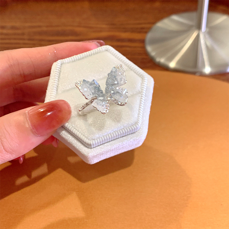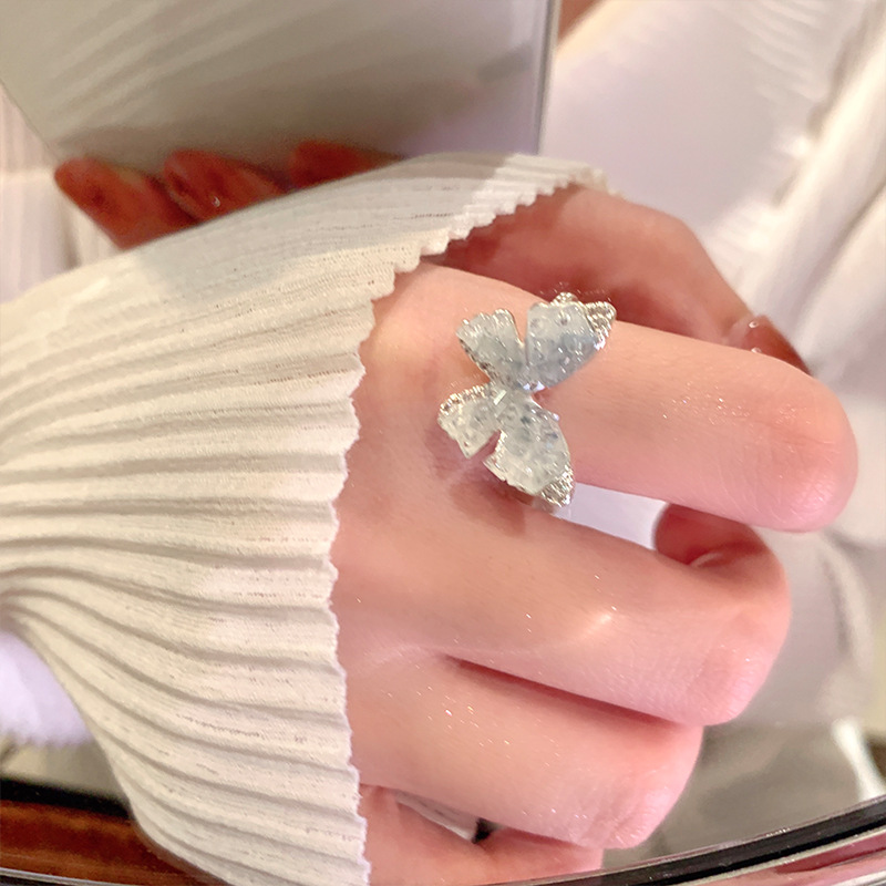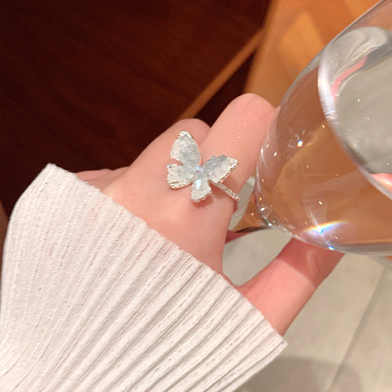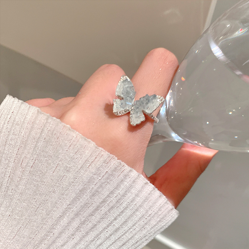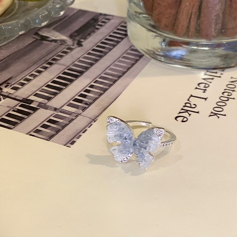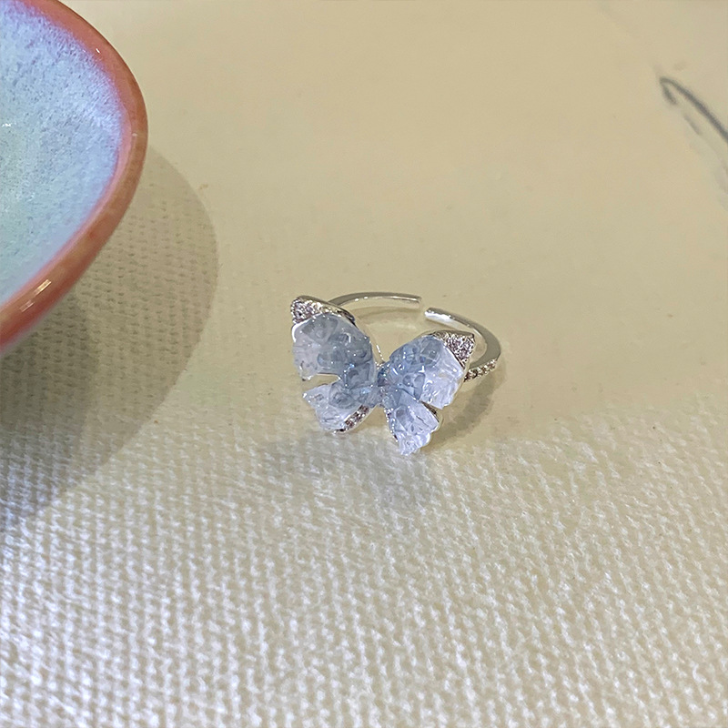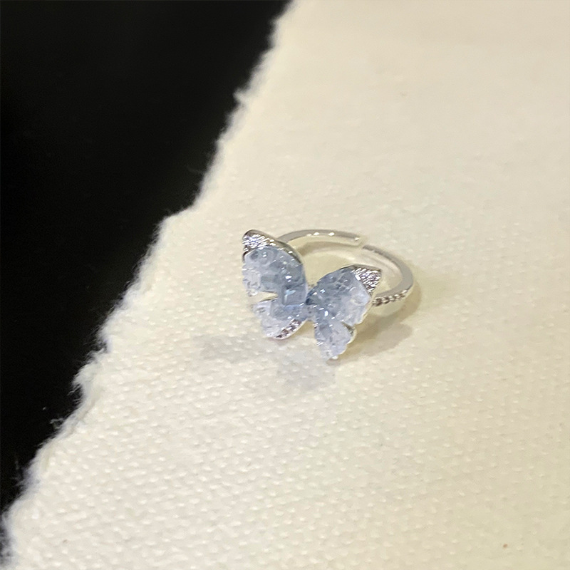 度假风渐变人造蓝晶款蝴蝶戒指ins简约高级感指环超仙公主风手饰