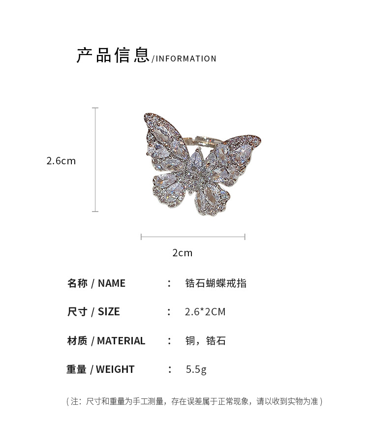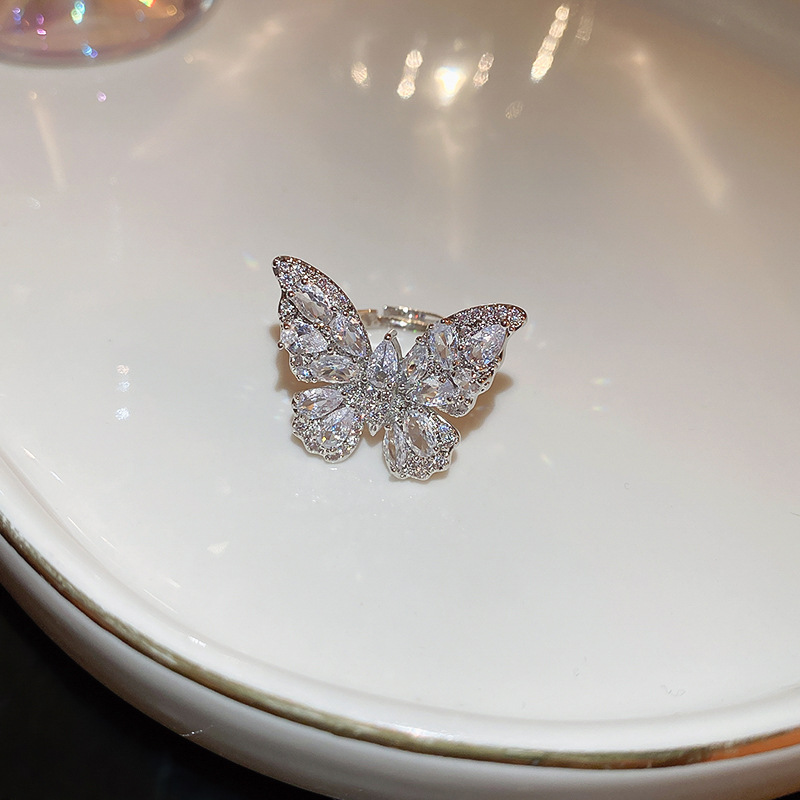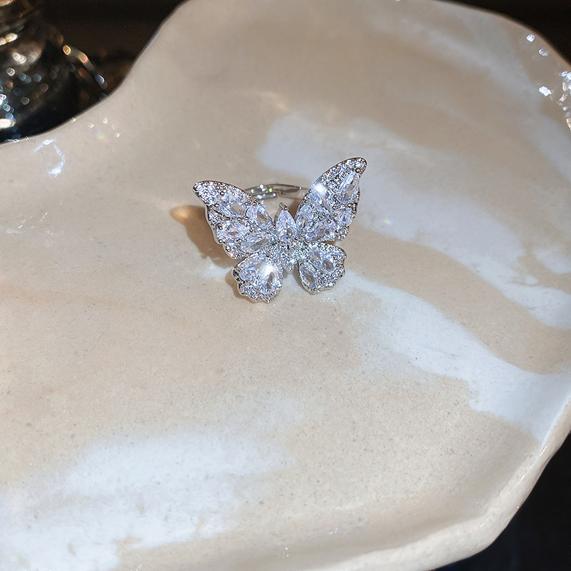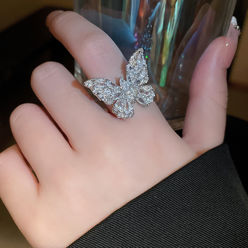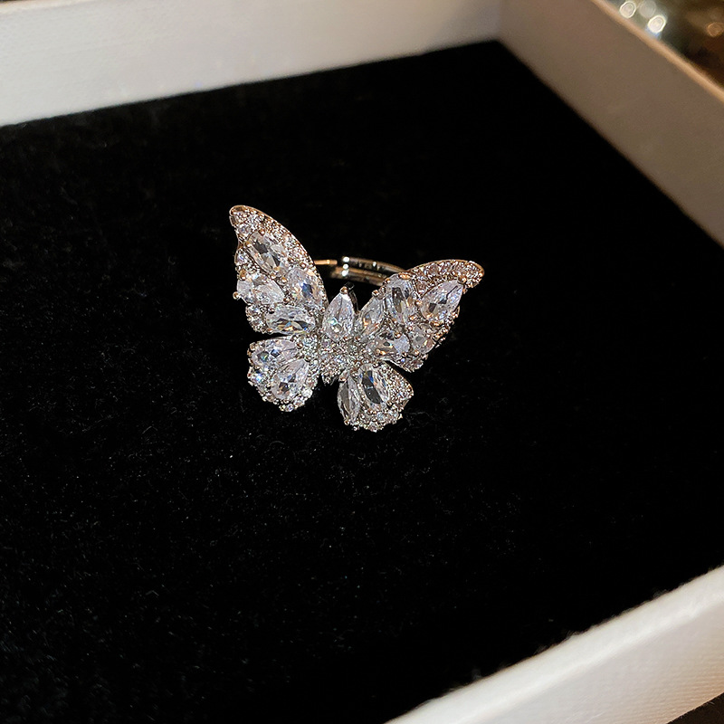超仙奢华锆石蝴蝶开口戒指欧美轻奢新潮食指戒小众高级感百搭手饰