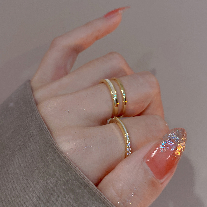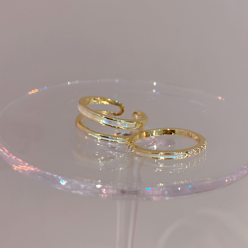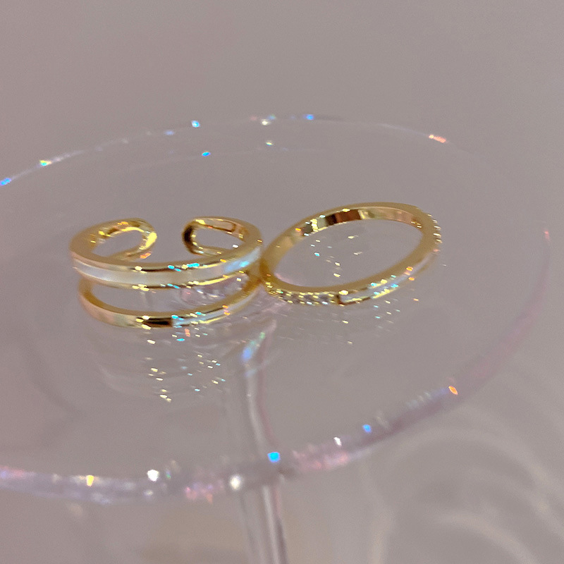 真金电镀锆石双层开口戒指小众设计ins风轻奢高级感食指戒女手饰