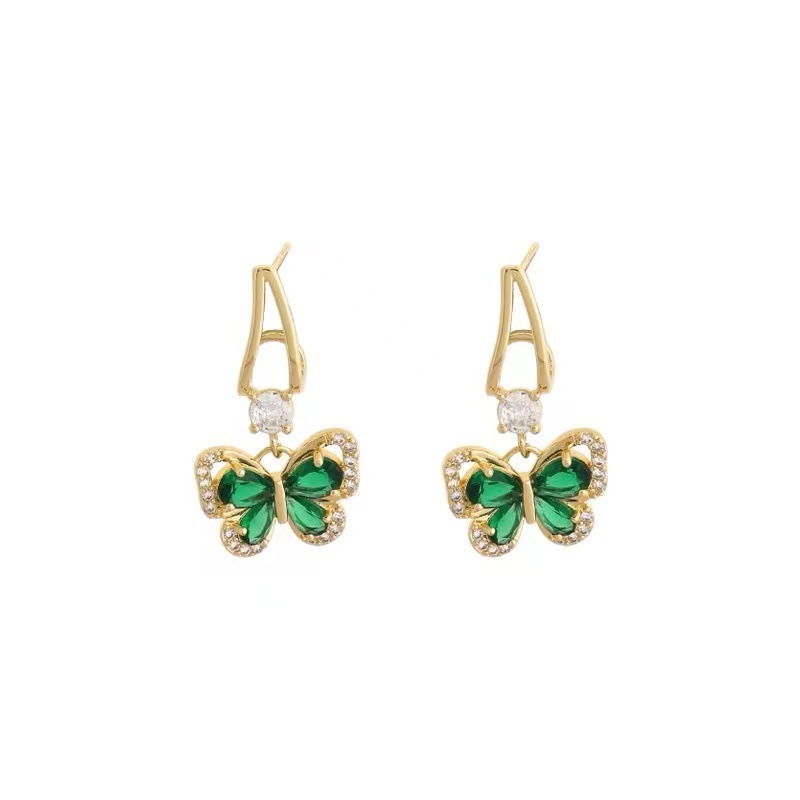 @特价@ 法式复古绿锆蝴蝶耳环女2023年新款轻奢高级感耳钉小众设