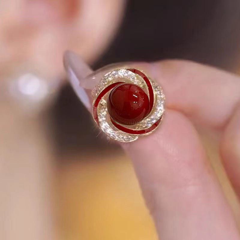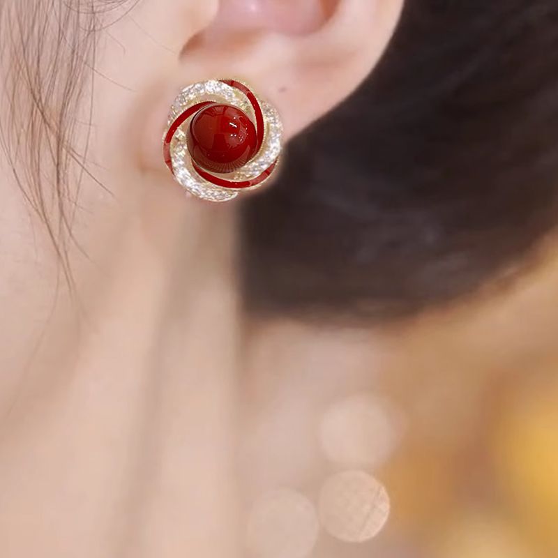 2024年新款红色珍珠耳钉女精致小巧耳饰高级感优雅气质小清新耳环