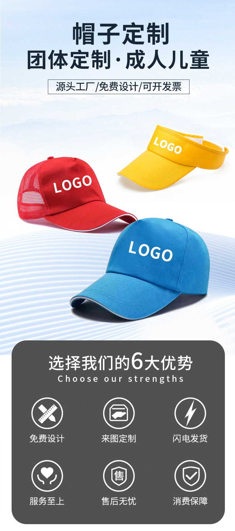 广告帽鸭舌大檐太阳帽空顶网帽旅游团队活动儿童帽子定做定制logo