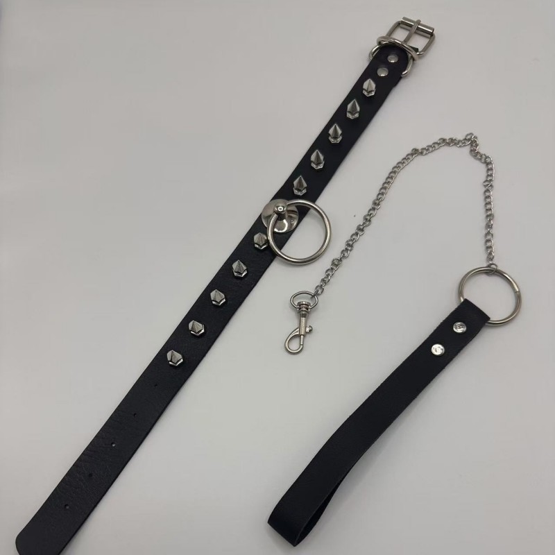 拍夸张钉尖欧美吊环项圈颈套带个性圆形铆钉项链皮质脖夜风钉街店