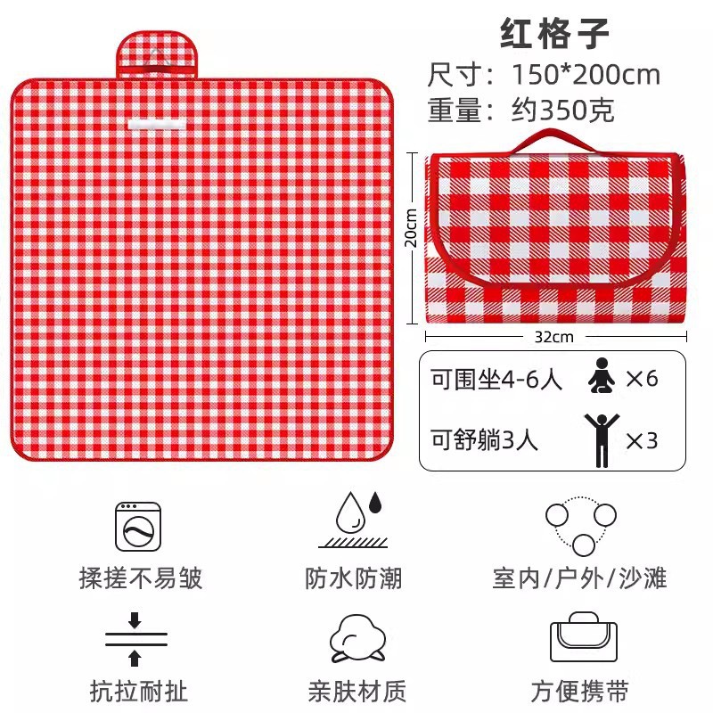 野餐垫跨境爆款防潮加厚 户外郊游便携地垫 超大可折叠格子野炊垫