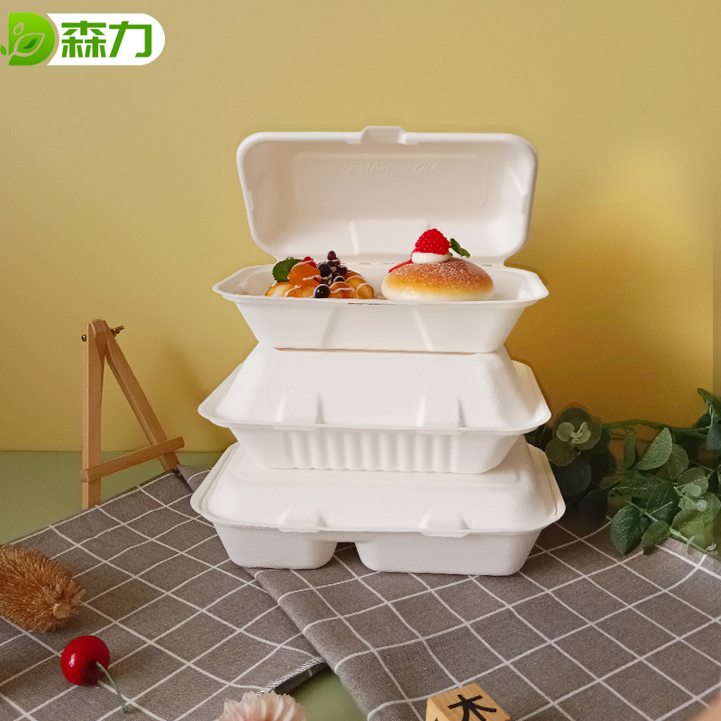 贝壳盒一次性连体餐盒可降解纸浆餐盒沙拉盒外卖便当盒 9*6寸餐具