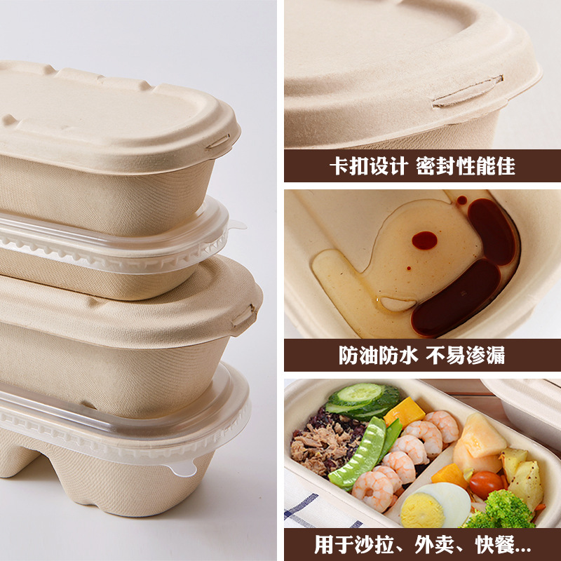 一次性沙拉便当盒轻食餐盒纸浆饭盒寿司外卖打包盒甘蔗浆野餐盒子