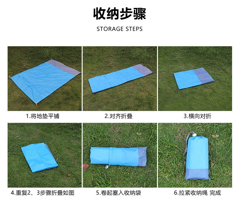 户外野营防水便捷可折叠便携野餐垫防潮垫涤纶格子布口袋沙滩垫