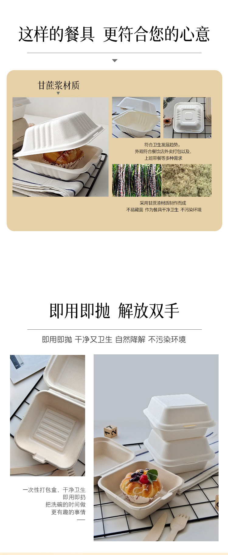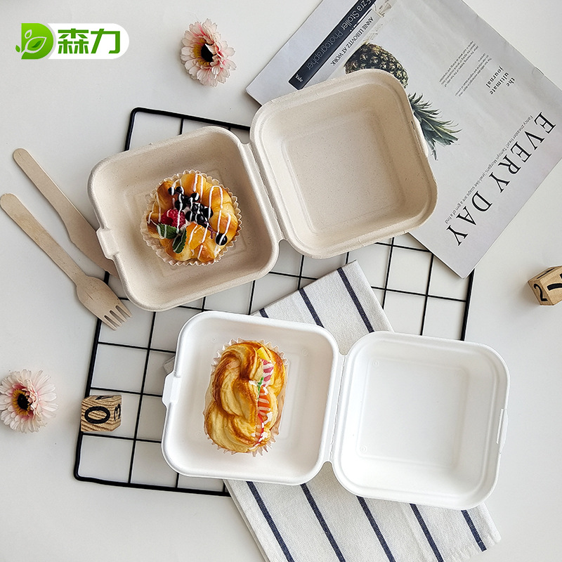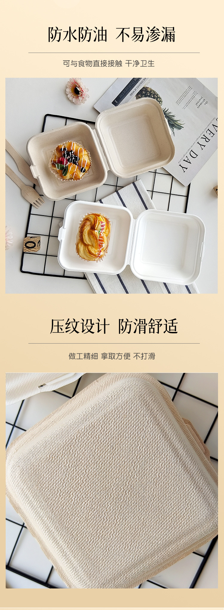 一次性纸浆汉堡盒蛋糕盒餐盒便当盒外卖蘸酱麻薯6甜品打包盒