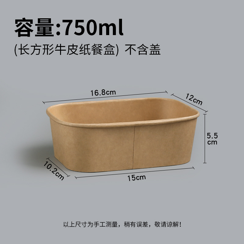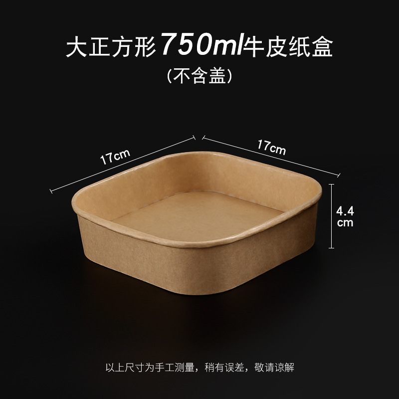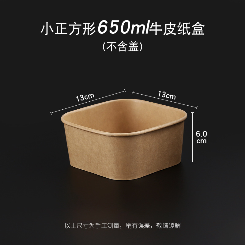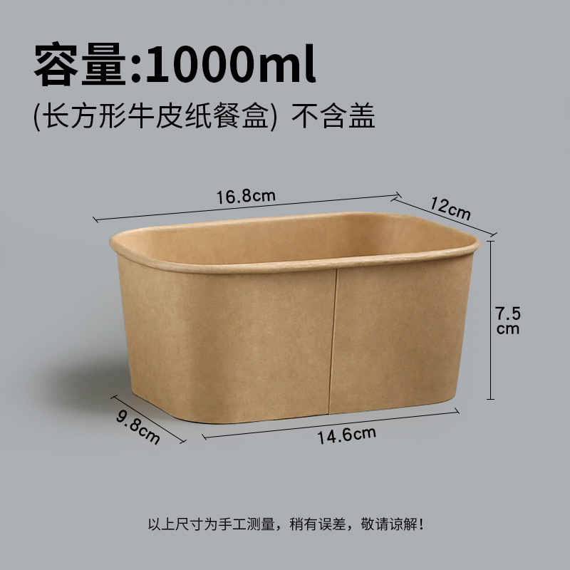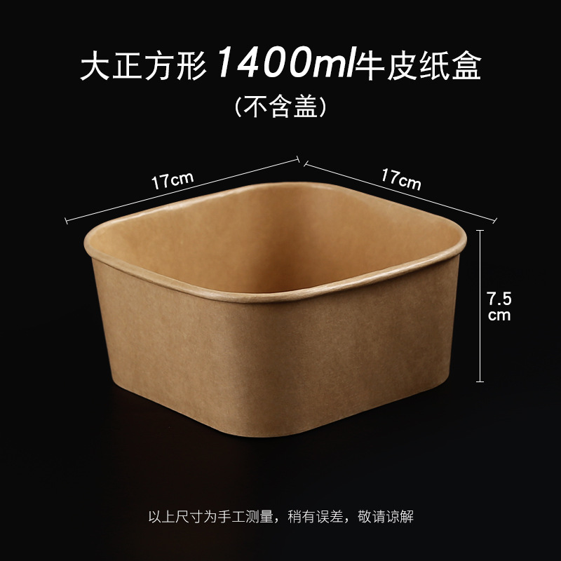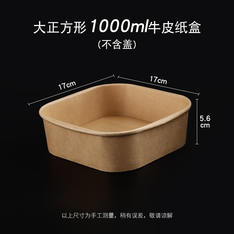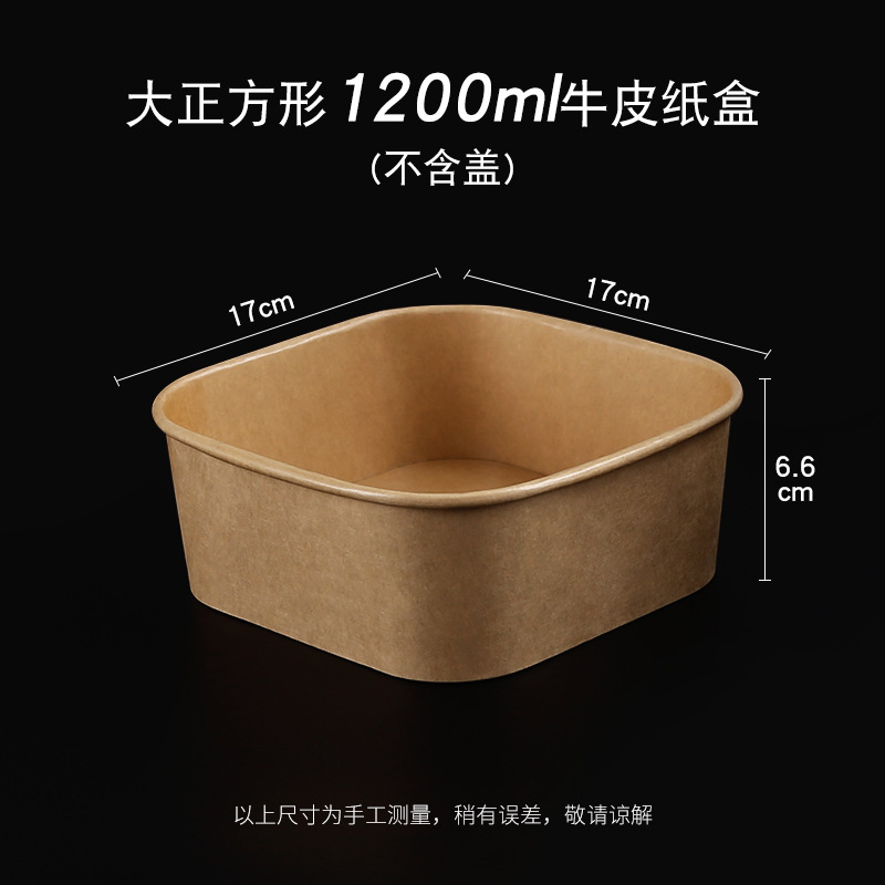 一次性甜品打包盒长方形牛皮纸美式餐盒凉皮面盒1200ml正方形纸碗