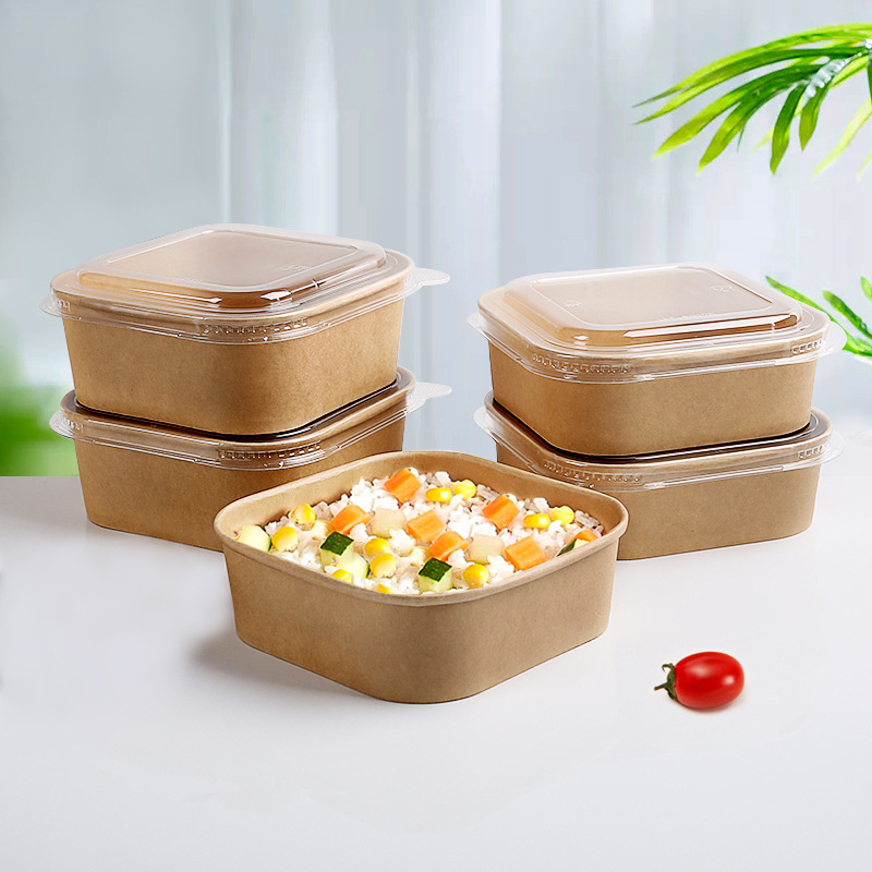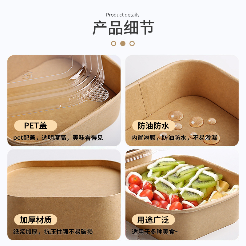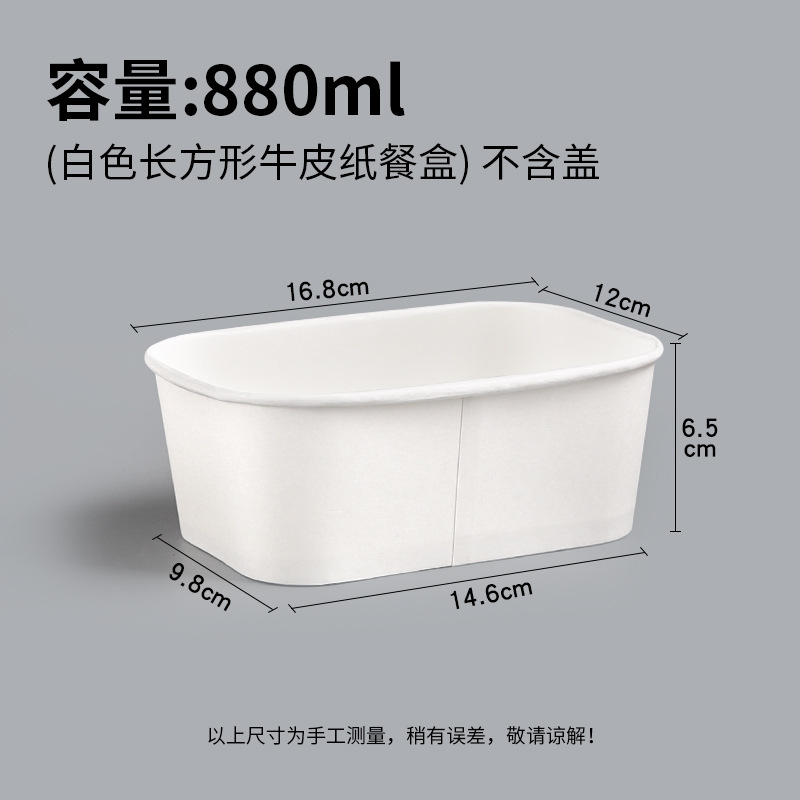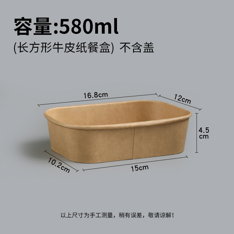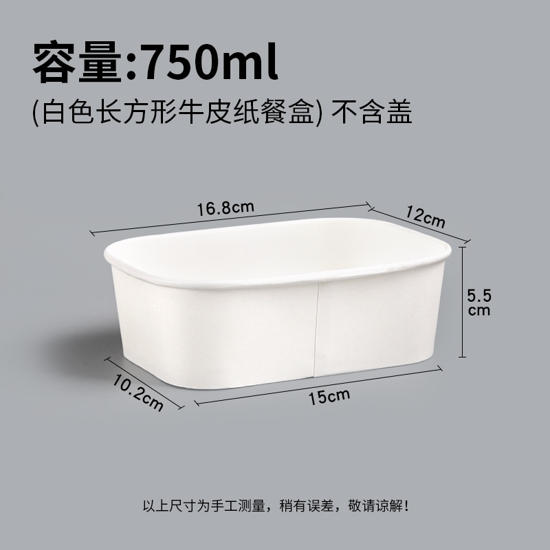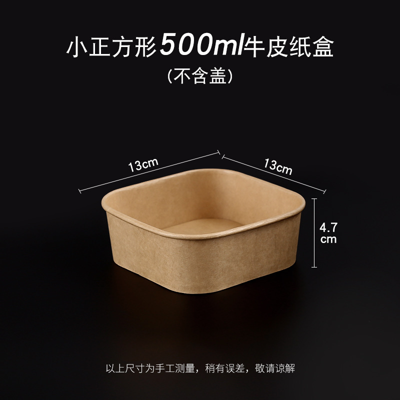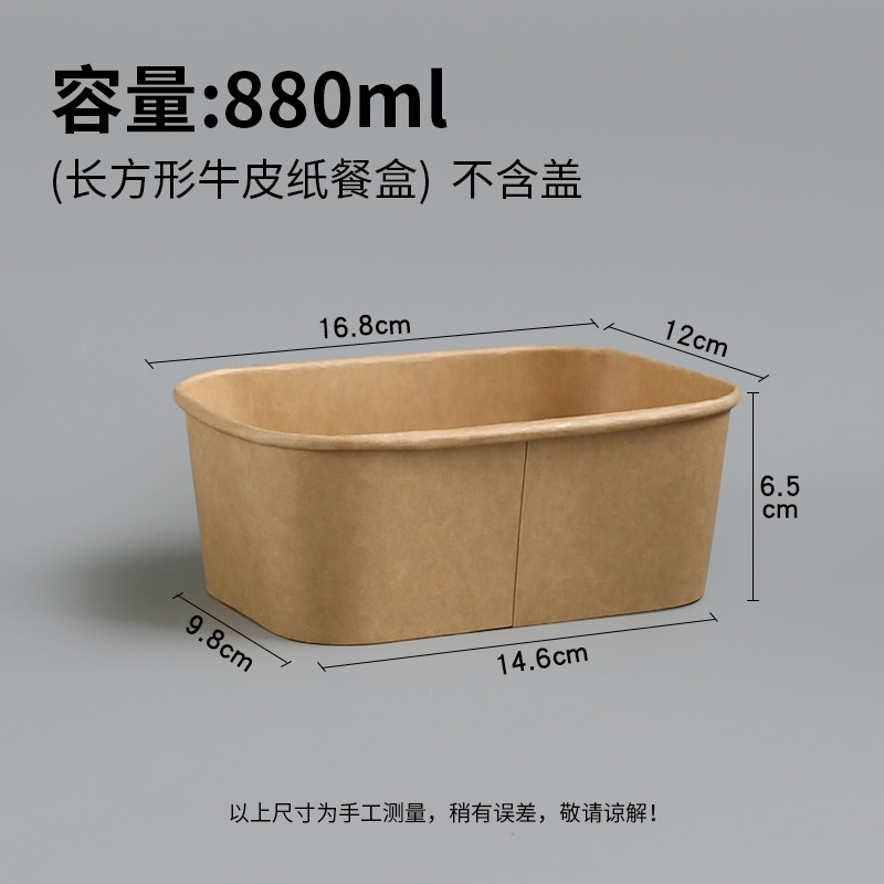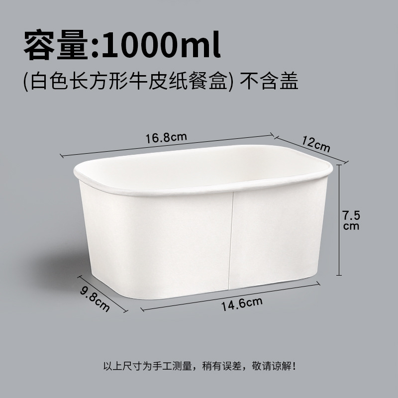 一次性甜品打包盒长方形牛皮纸美式餐盒凉皮面盒1200ml正方形纸碗