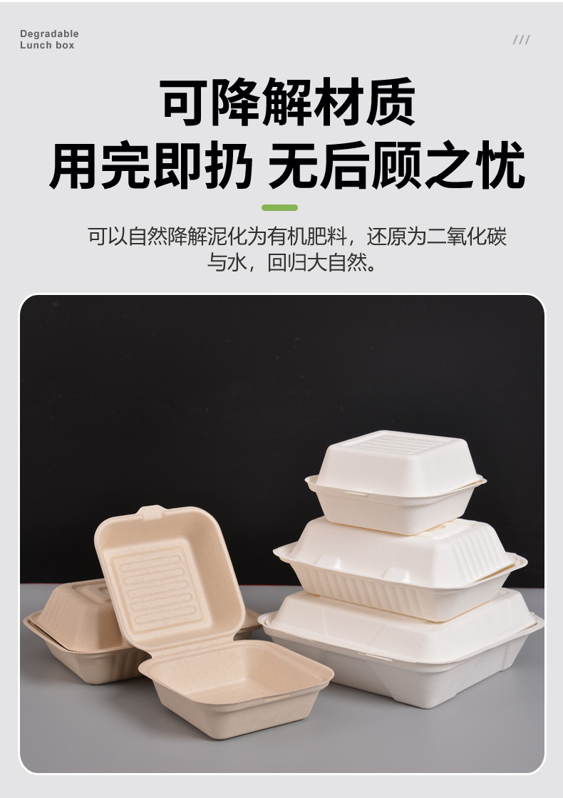一次性汉堡盒打包盒连体餐盒可微波可降解餐饮外卖快餐打包盒