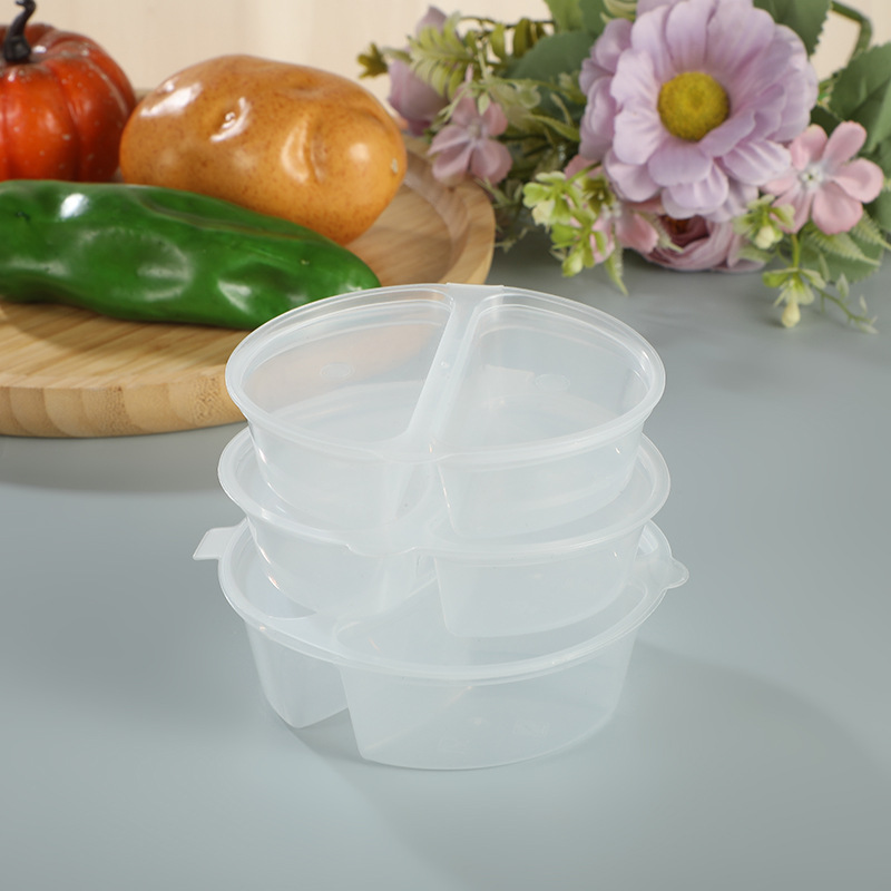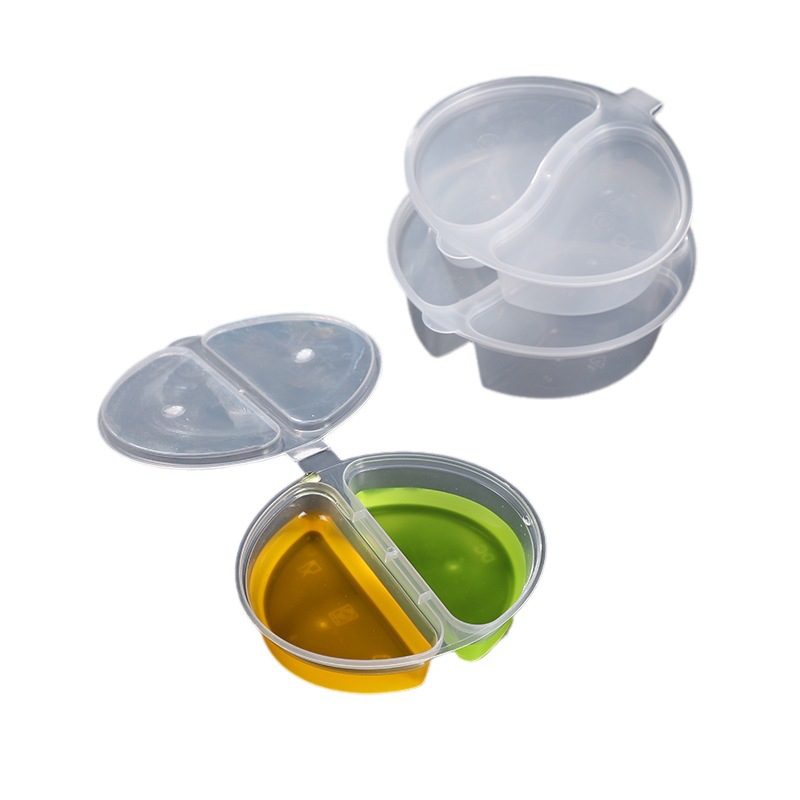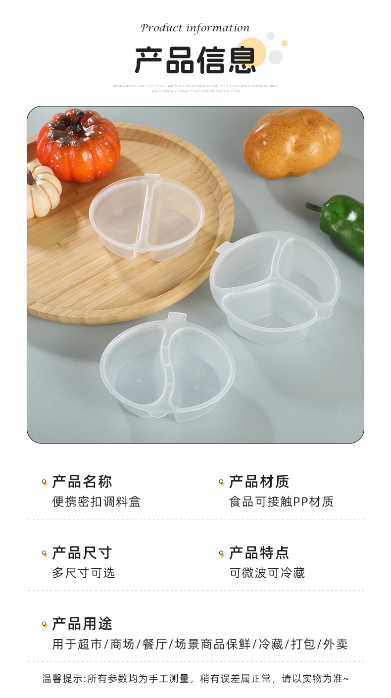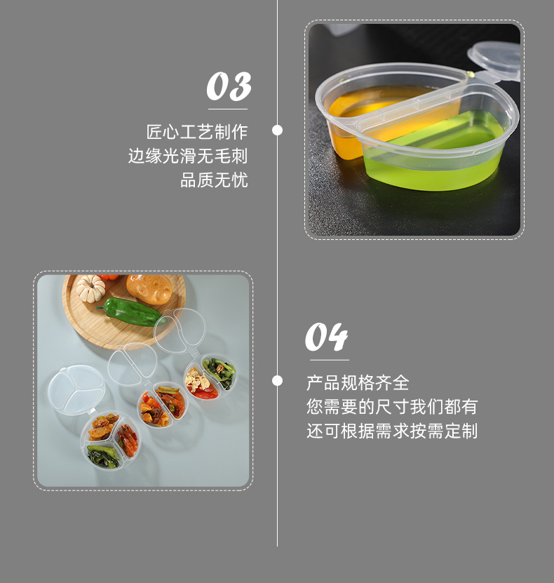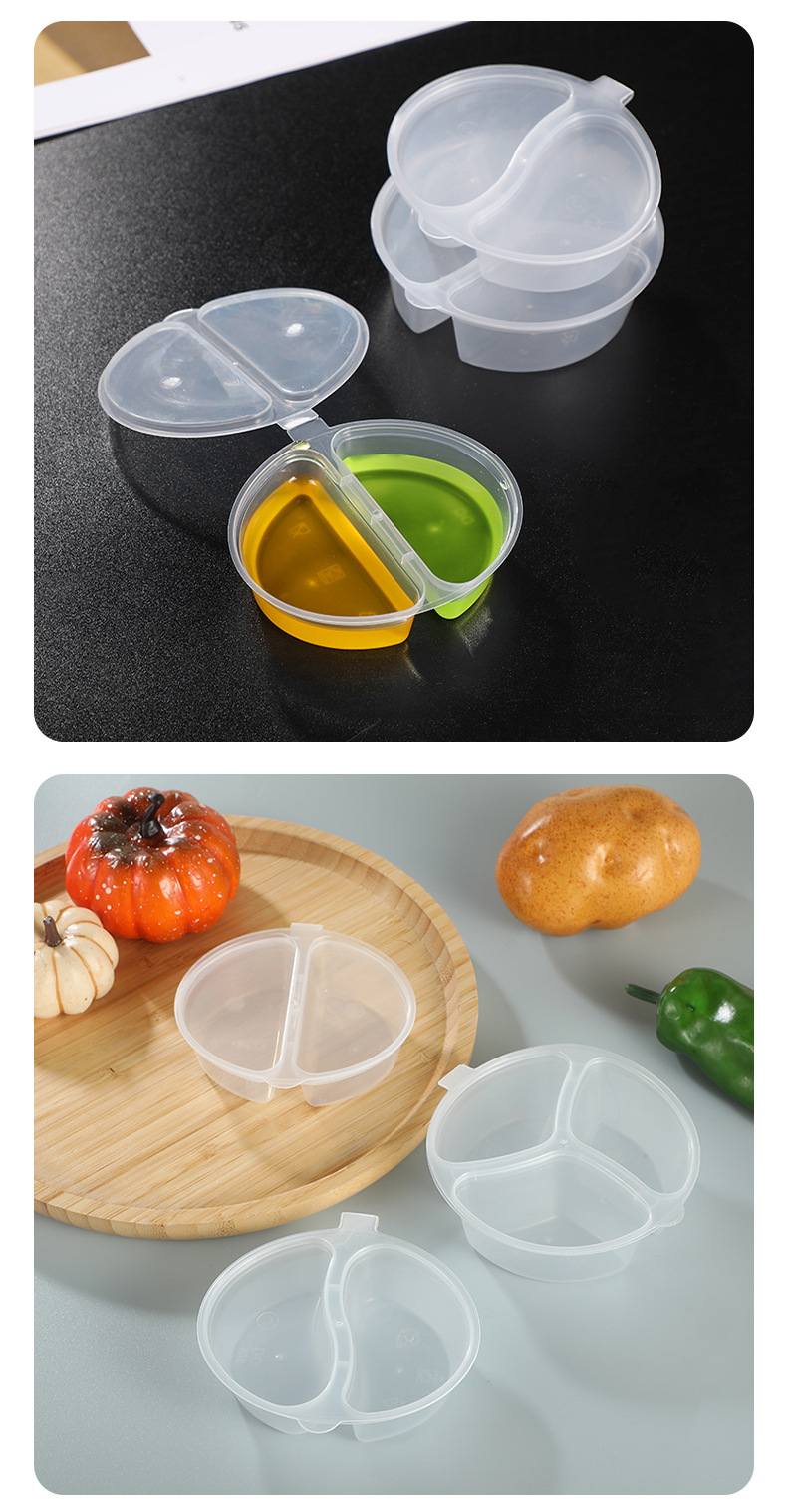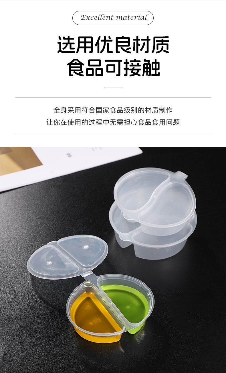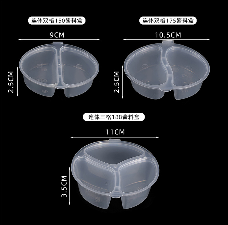 一次性双格酱料盒带盖密封调料盒三格小料连体杯商用小菜打包盒