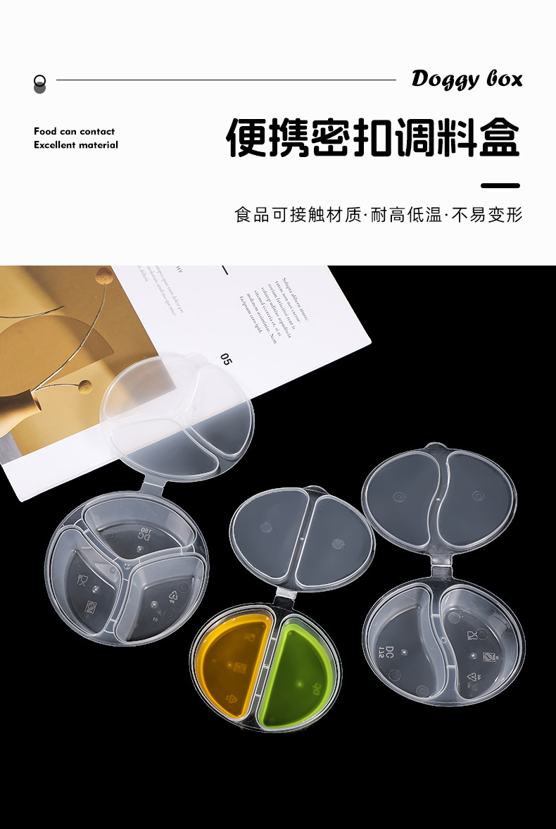 | one-piece three-grid 188 sauce container (600 boxes/box)(连体三格188酱料盒(600盒/箱)) | USD $44.85 | 9976 carton available |