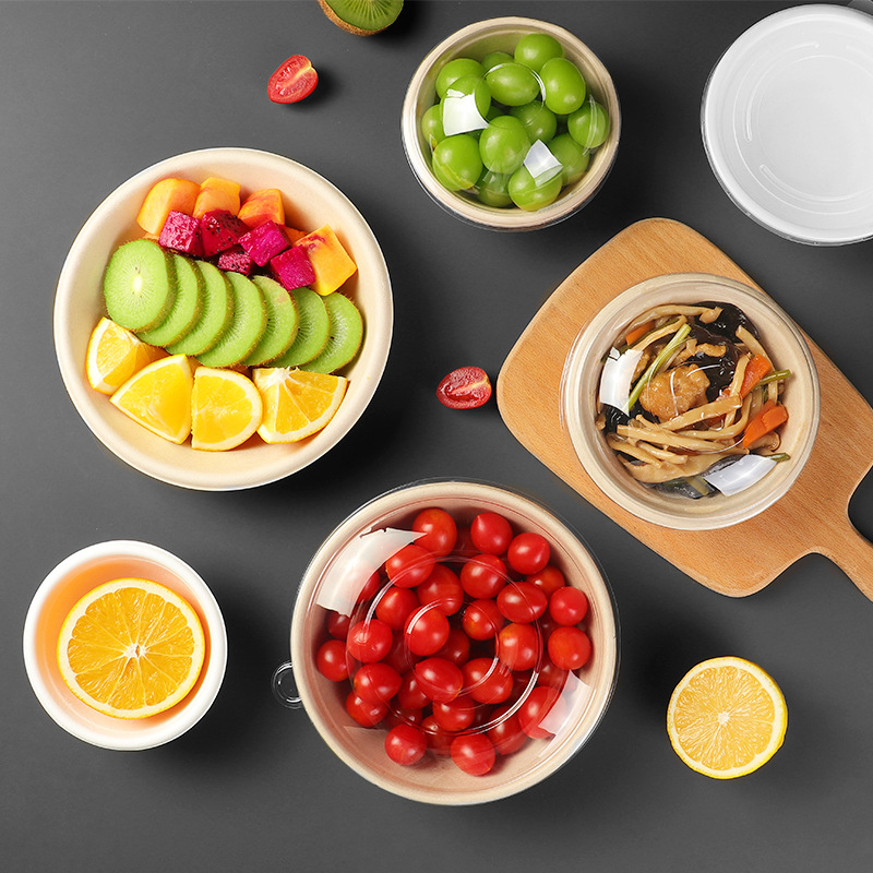 手柄碗一次性纸碗酸奶碗苹果碗芋泥冰碗绵绵冰打包盒圆形碗