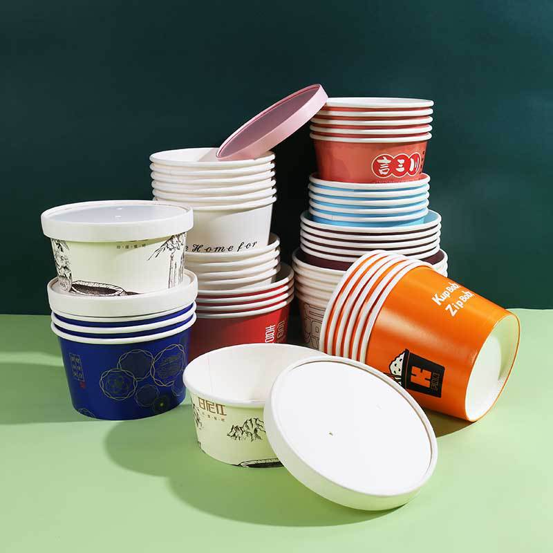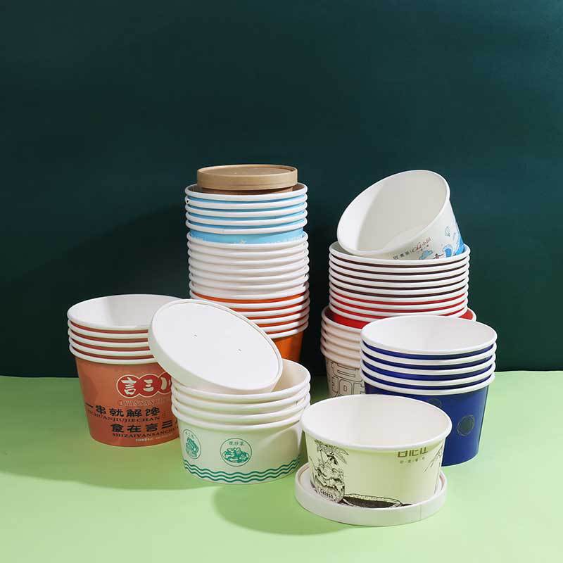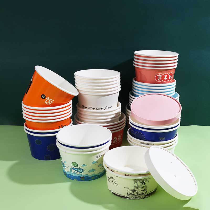 圆形纸碗加厚防漏外卖打包餐盒冰淇淋碗粥杯泡面桶一次性牛皮纸碗