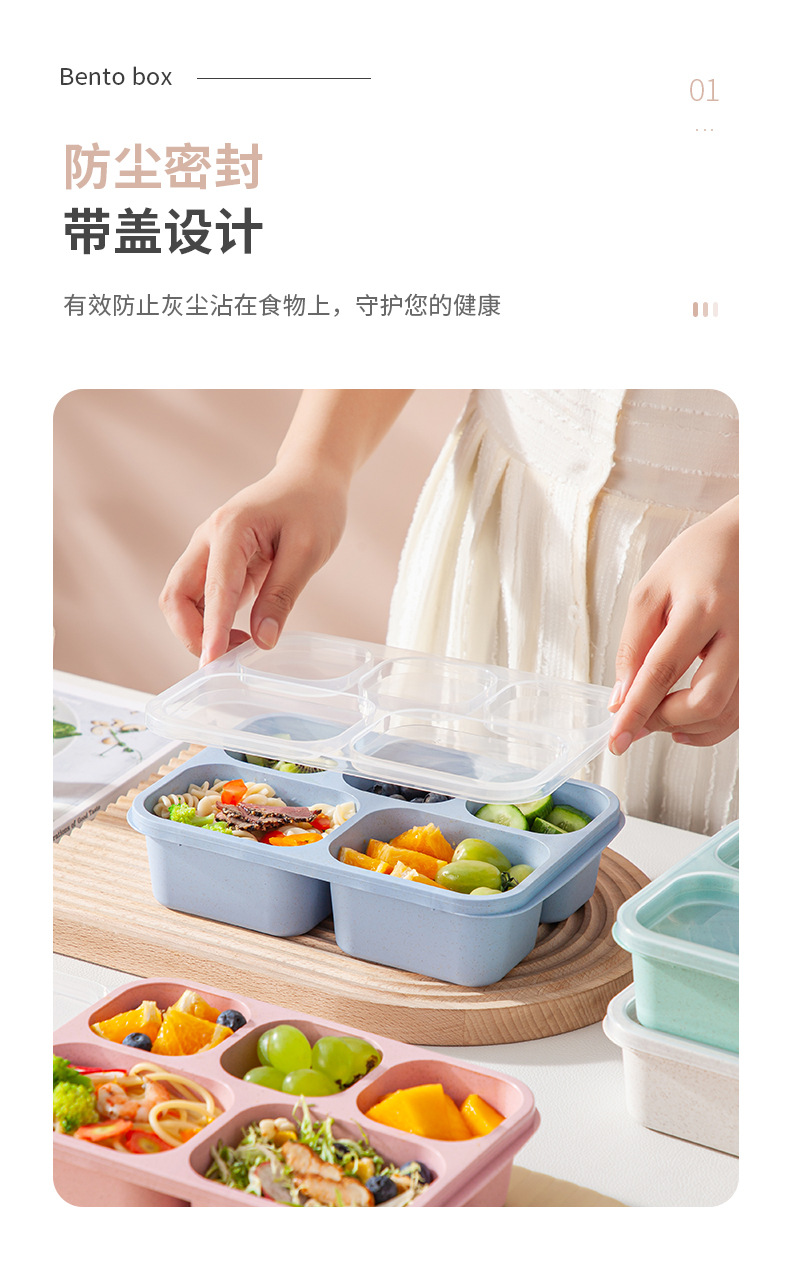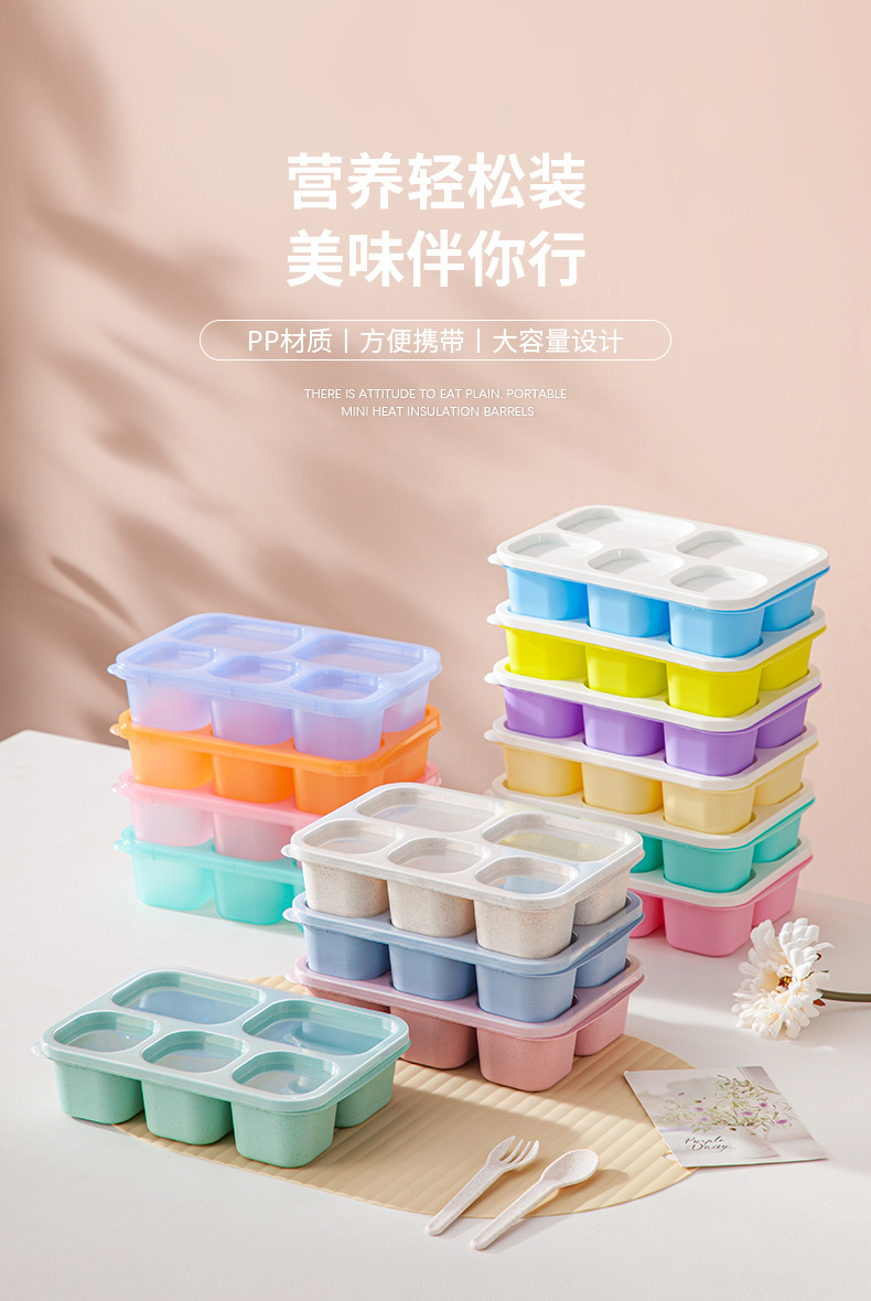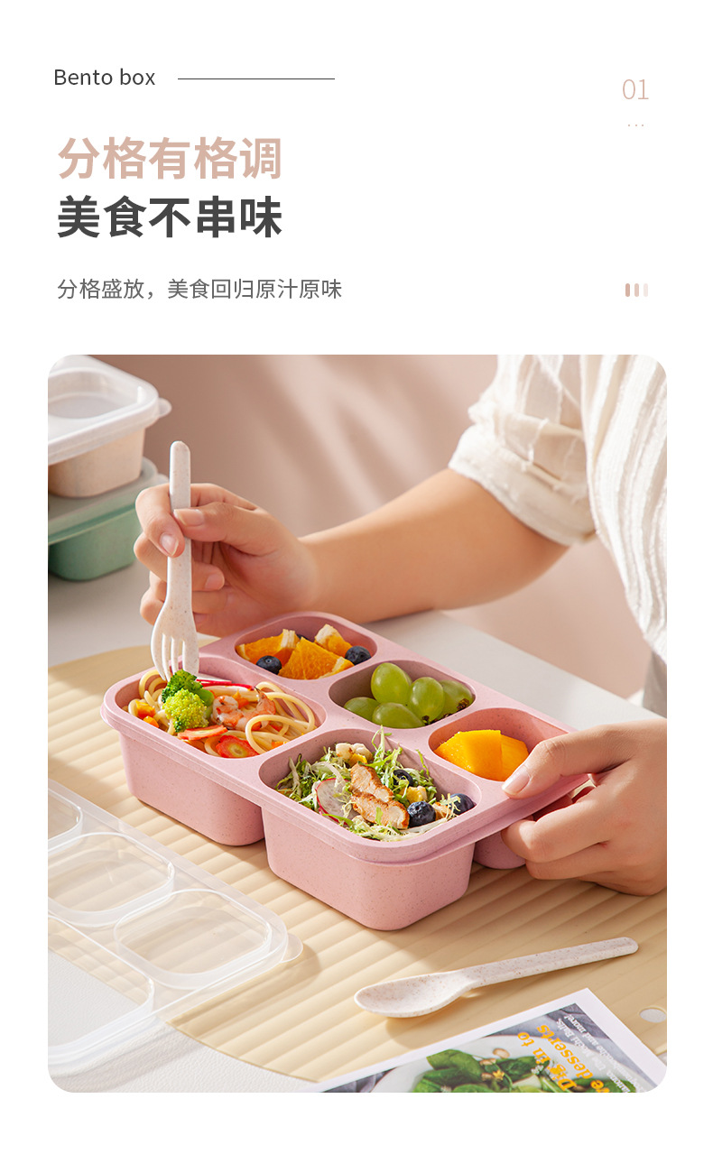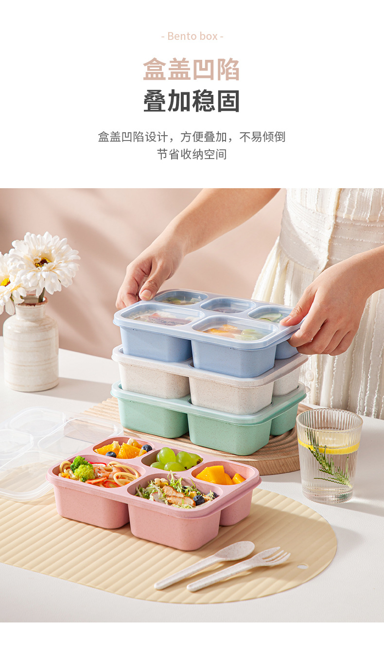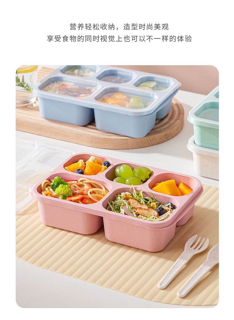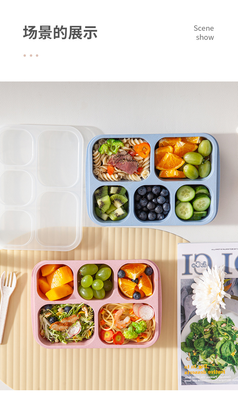 多款式分格点心餐盒小麦材质 4格 5格水果饭盒儿童餐盘家用减脂创