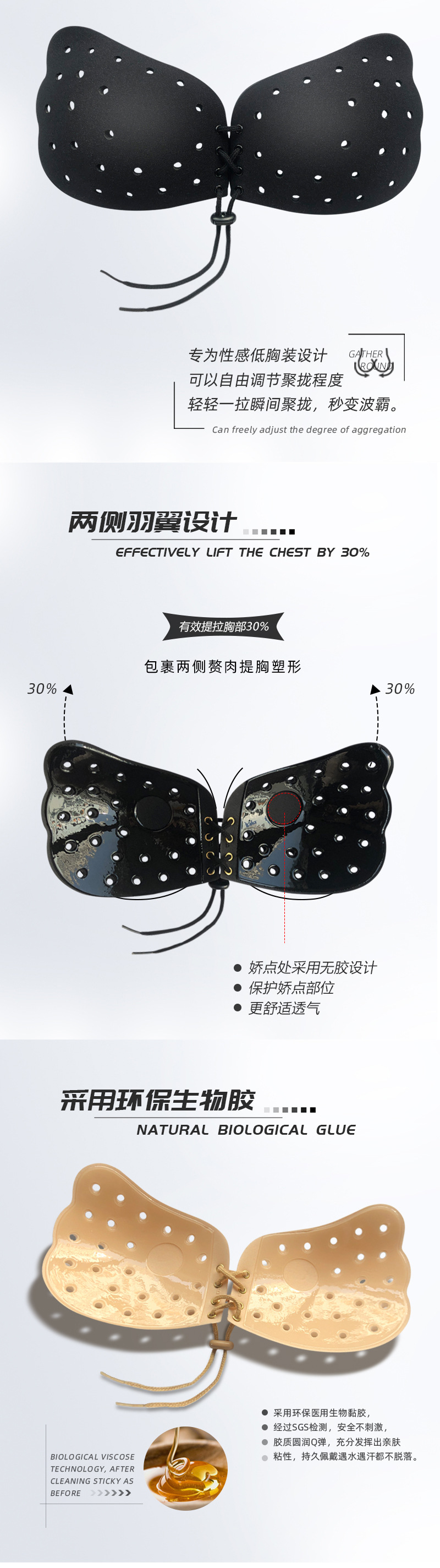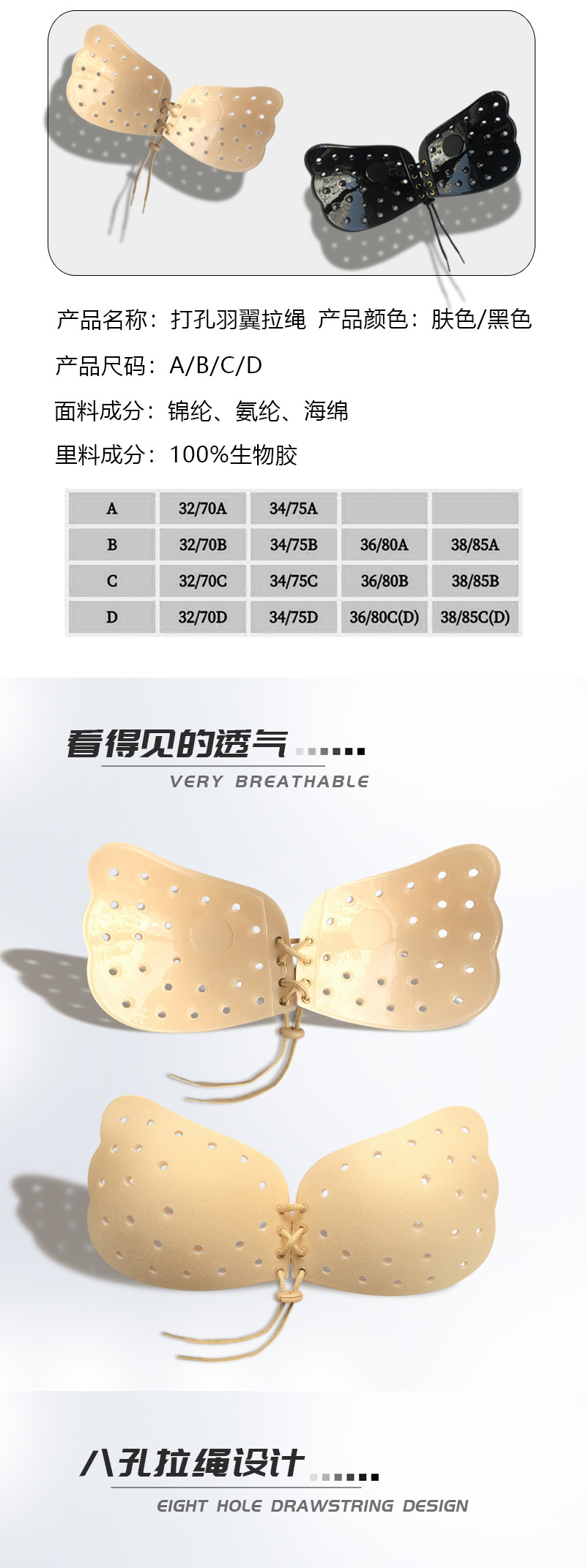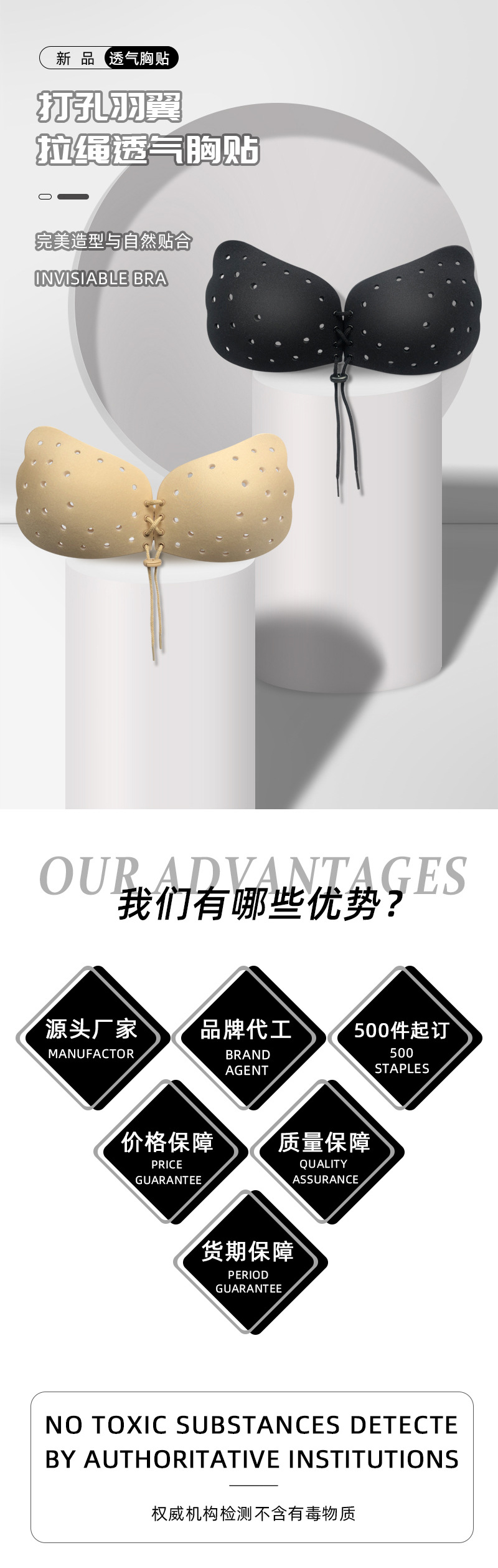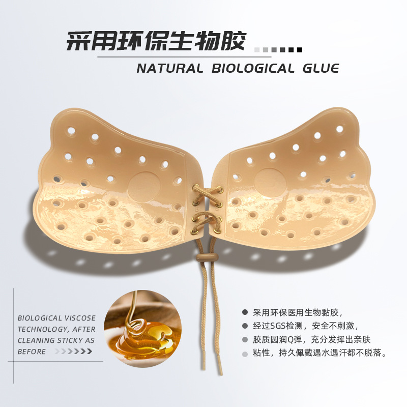 跨境羽翼拉绳胸贴聚拢婚纱加厚硅胶乳贴生物胶前扣打孔隐形文胸贴