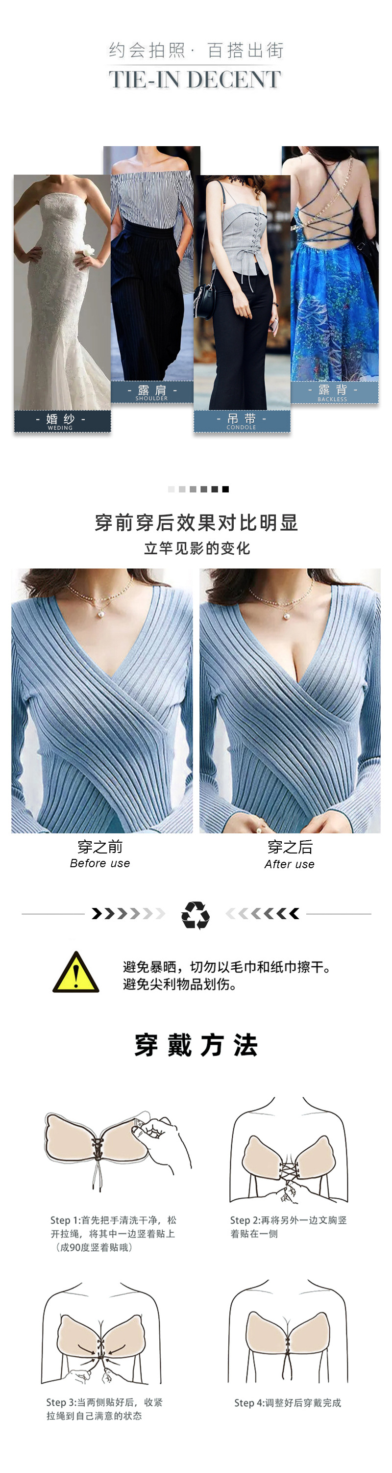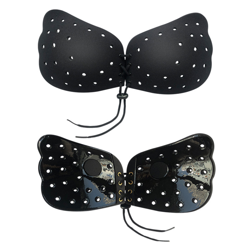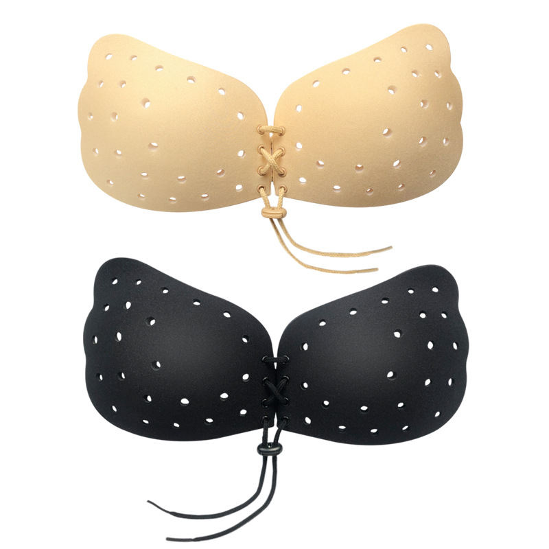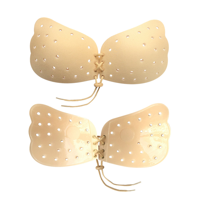 跨境羽翼拉绳胸贴聚拢婚纱加厚硅胶乳贴生物胶前扣打孔隐形文胸贴