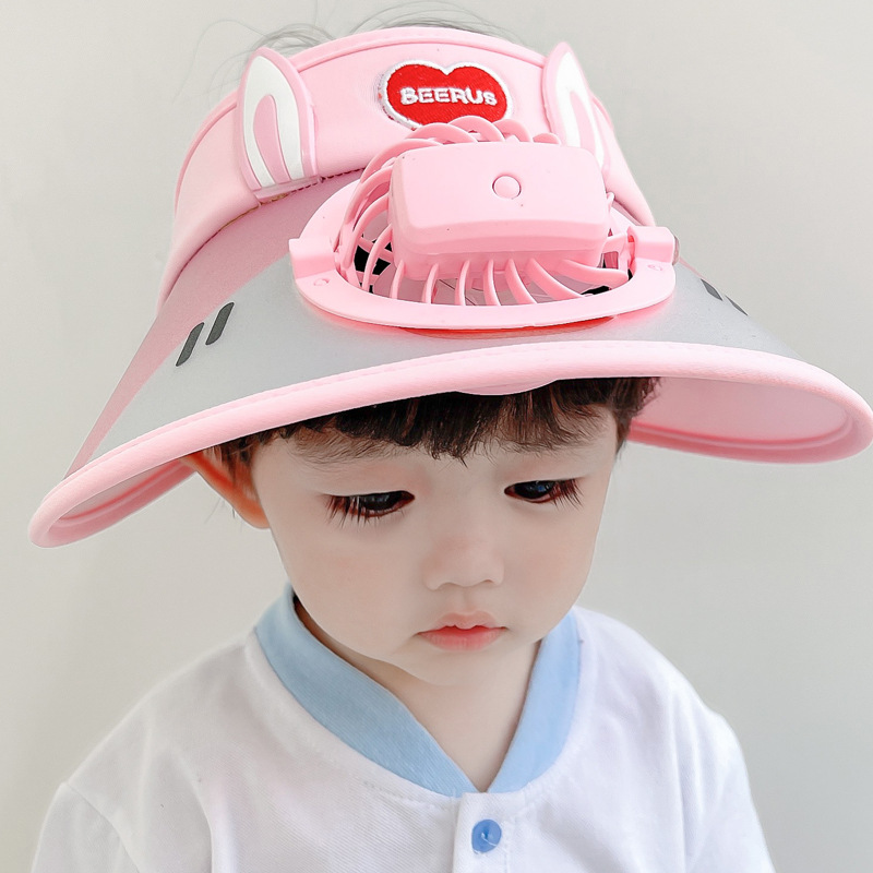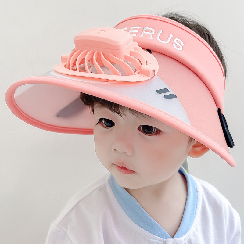 儿童防晒帽带风扇男童夏季大帽檐空顶遮阳帽女孩出游可调节沙滩帽