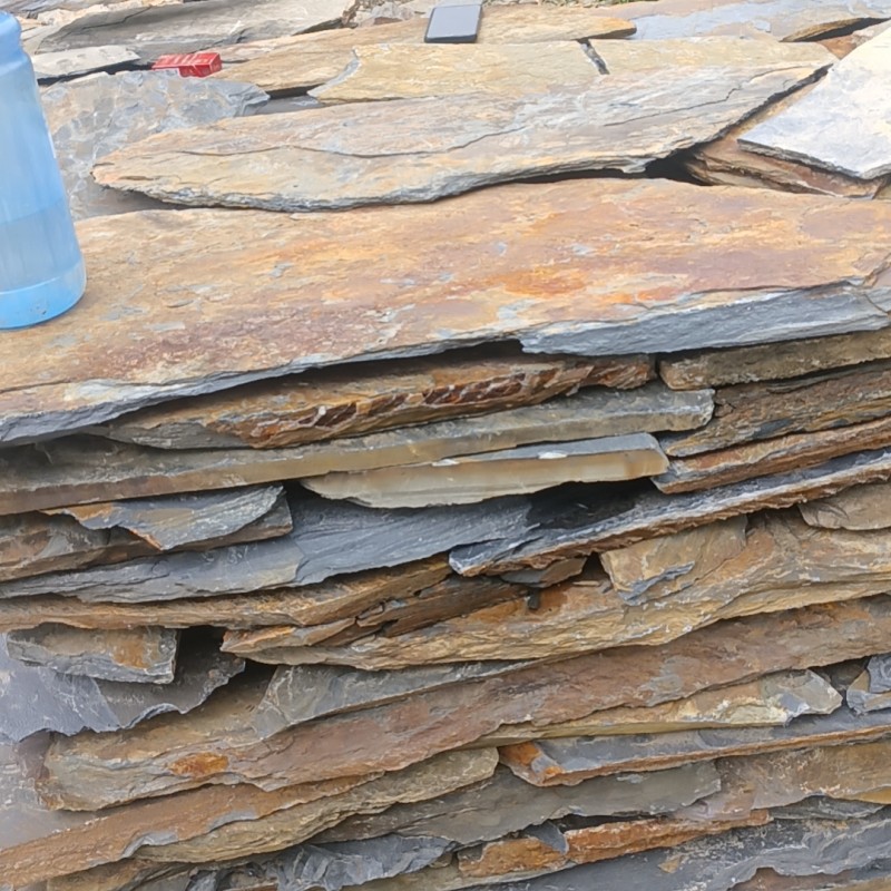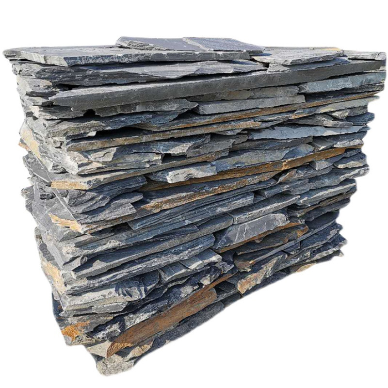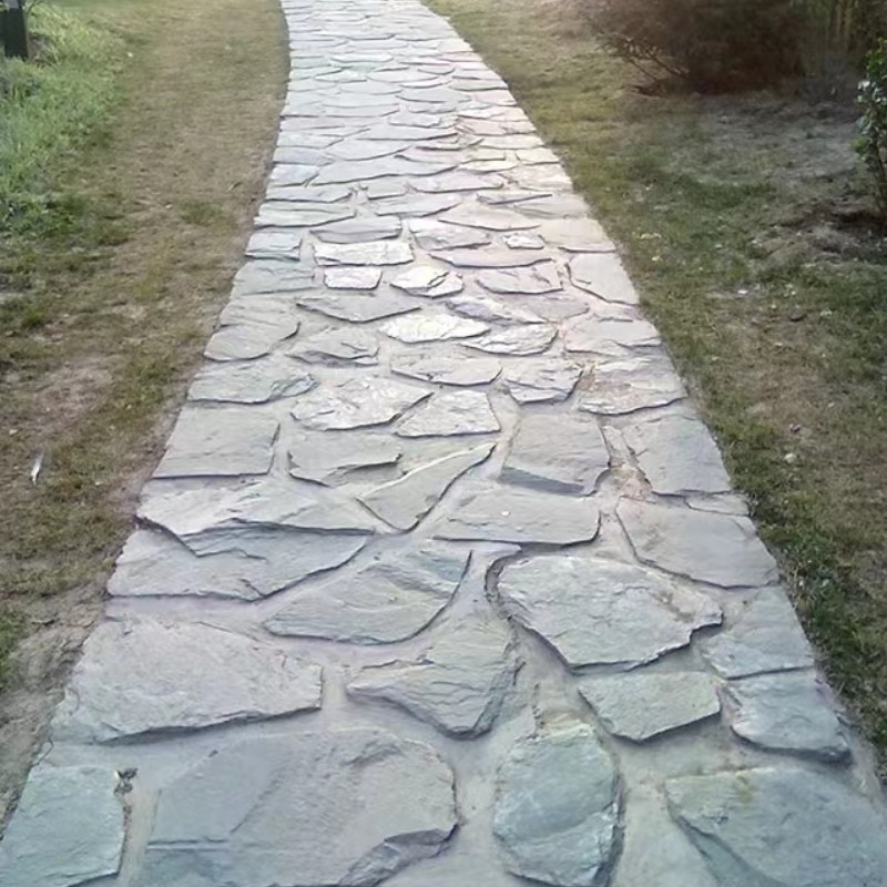 青石板碎拼不规则片石板岩文化石户外园林黑色防滑地铺石踏步石板