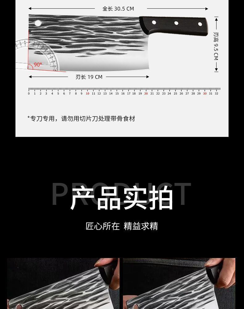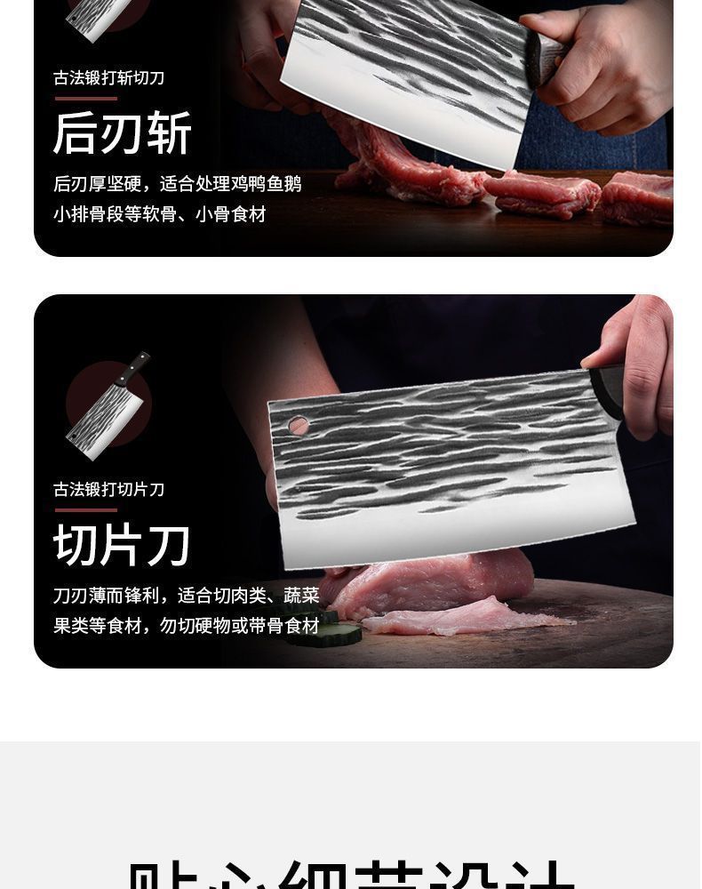 批发手工锻打斩切刀不锈钢条纹方刀家用厨房锋利超快切片刀砍骨刀